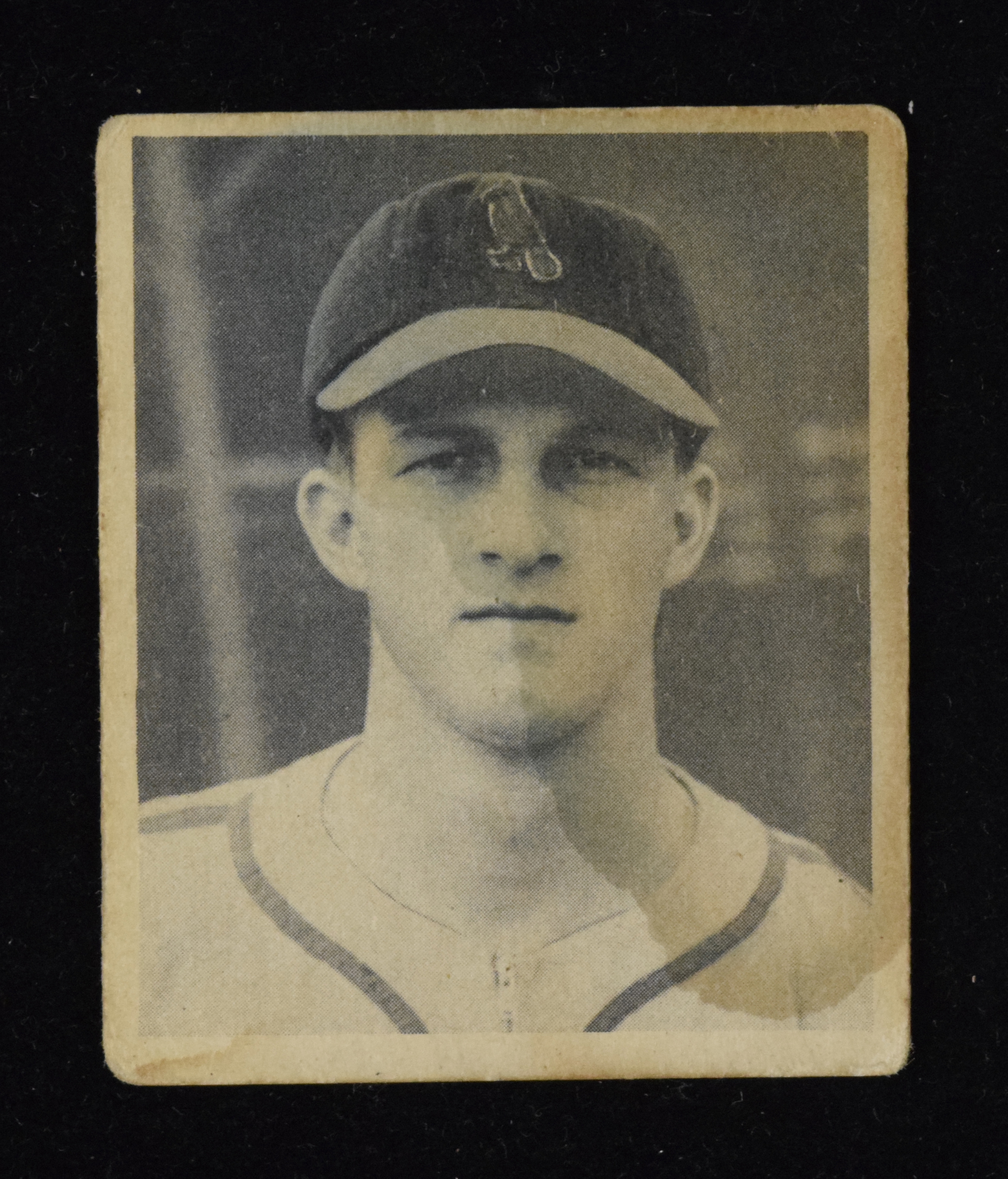 Description:1948 Bowman #36 Stan Musial RC (PR; staining) Key rookie card in the 1948 Bowman was unfortunately hit with water at some point, as a large stain covers more than half the card. Stain is visible on both the front and back: PR.
