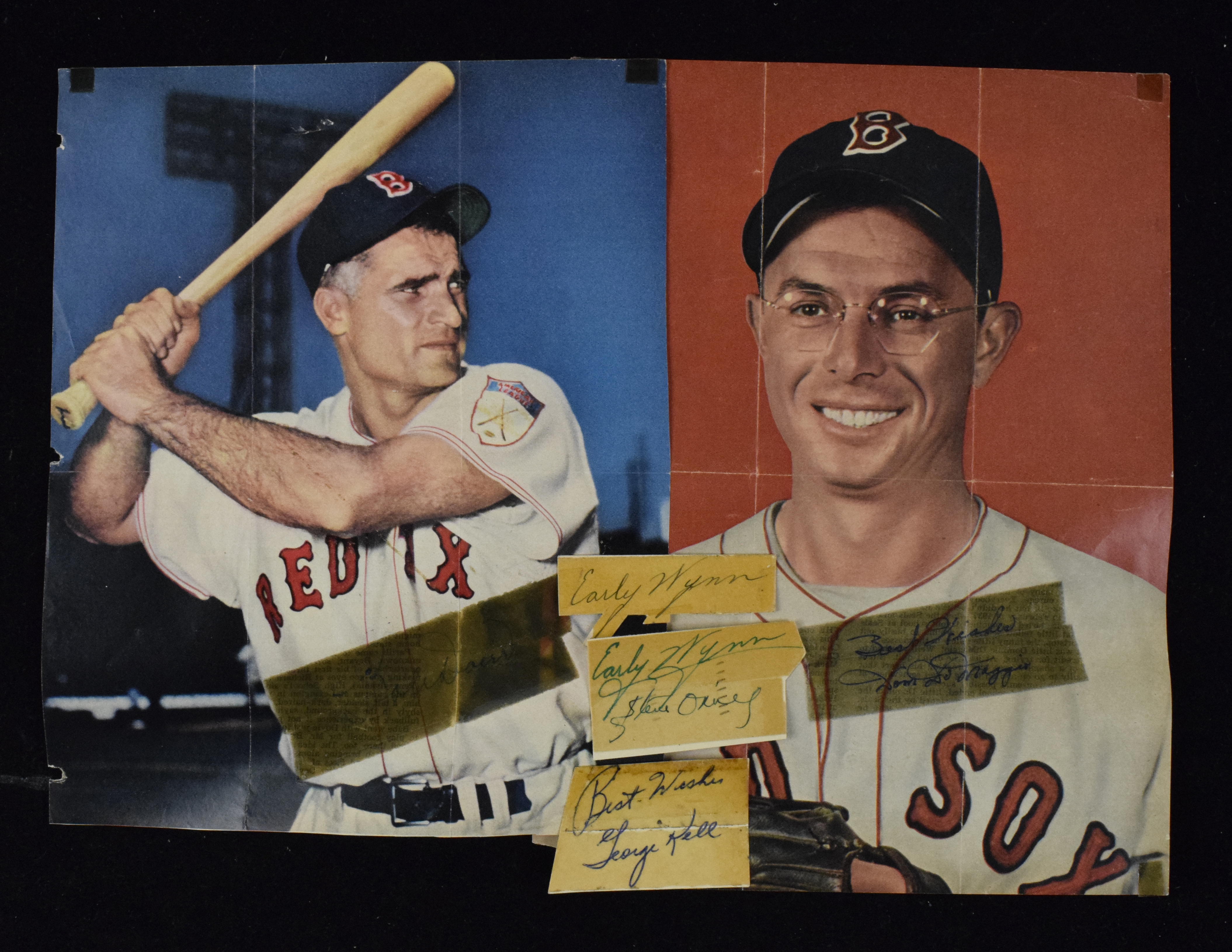 Description:Lot of (17) cut signatures with HOFers, including Early Wynn, Bill Terry (Sigs. EX-NM). Includes (9) cut signatures adhered with tape to various magazine cutouts, including Ray Scarborough, Mel Parnell, Dom DiMaggio, Bobby Doerr, Birdie Tebbets, Johnny Pesky and others, as well as (8) cut sigantures that have all be taped over, with Mel Parnell, (2) Early Wynn, (2) Bill Terry, George Kell, Johnny Pesky and others. Signatures range from 5 to 7 out of 10, and items range FR-GD (taped).