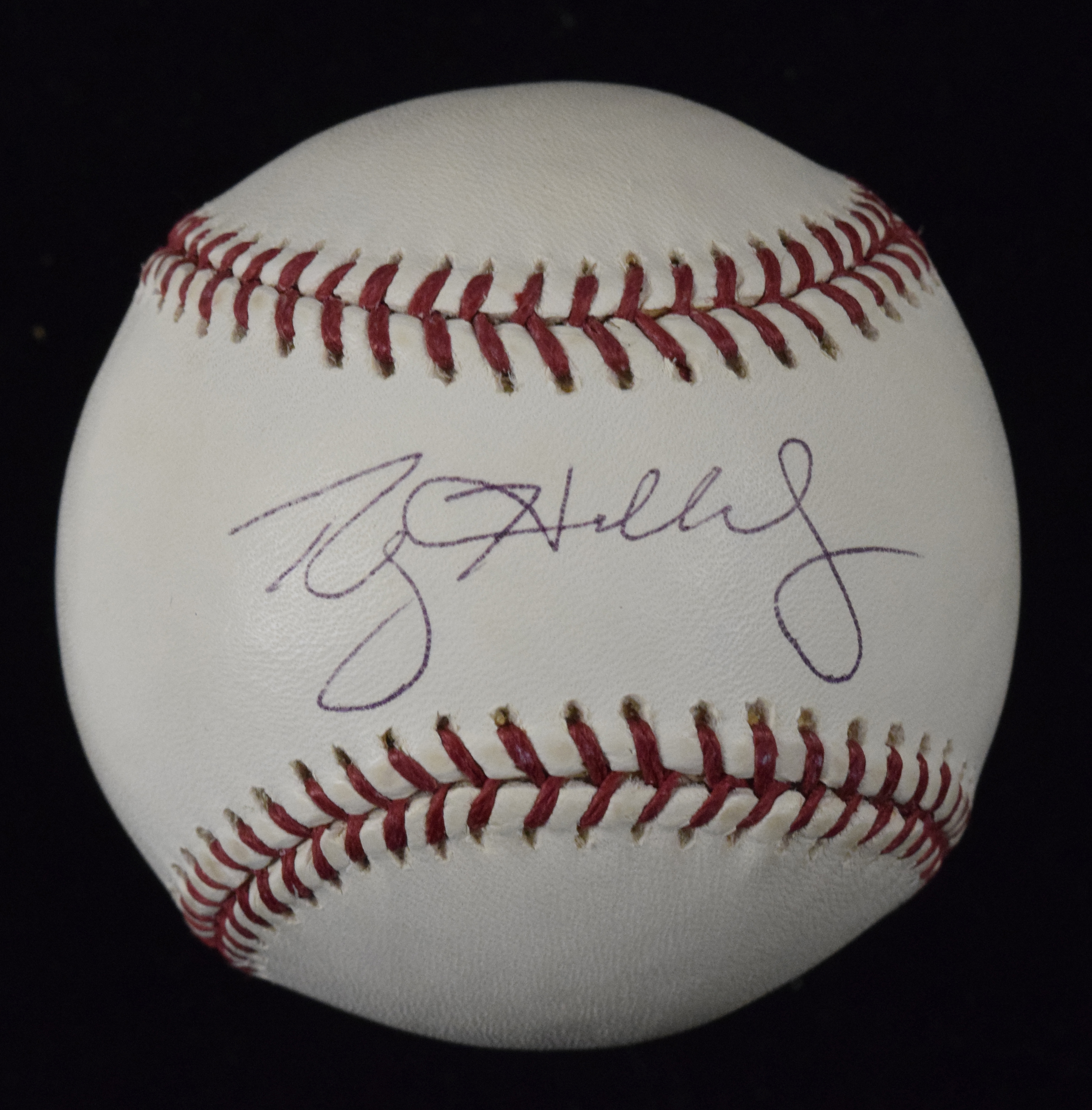 Description:Very nice Roy Halladay autographed B. Selig baseball (Sig. MT). Snow-white B. Selig MLB baseball has been signed on the sweet spot by Phillies great Roy Halladay, rating 9 out of 10. Baseball has little to no toning: NM/MT.
