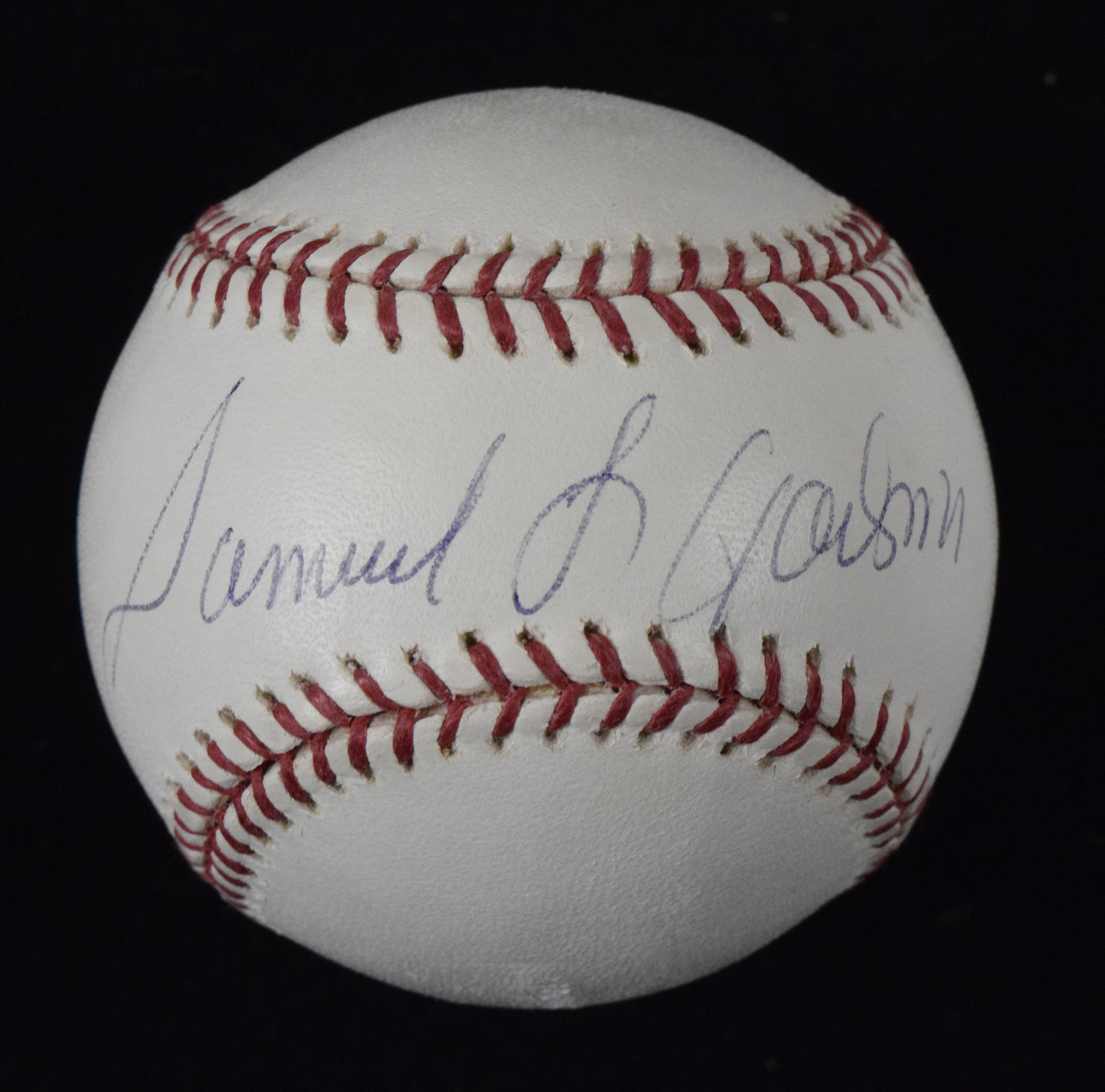 Description:Samuel L. Jackson autographed B. Selig baseball (Sig. NM/MT). Snow-white B. Selig MLB baseball has been signed on the sweet spot by well-known actor Samuel L. Jackson, whose breakout role was in Quentin Tarantino's Pulp Fiction. Signature rates 8 out of 10, and baseball has little to no toning: NM/MT.