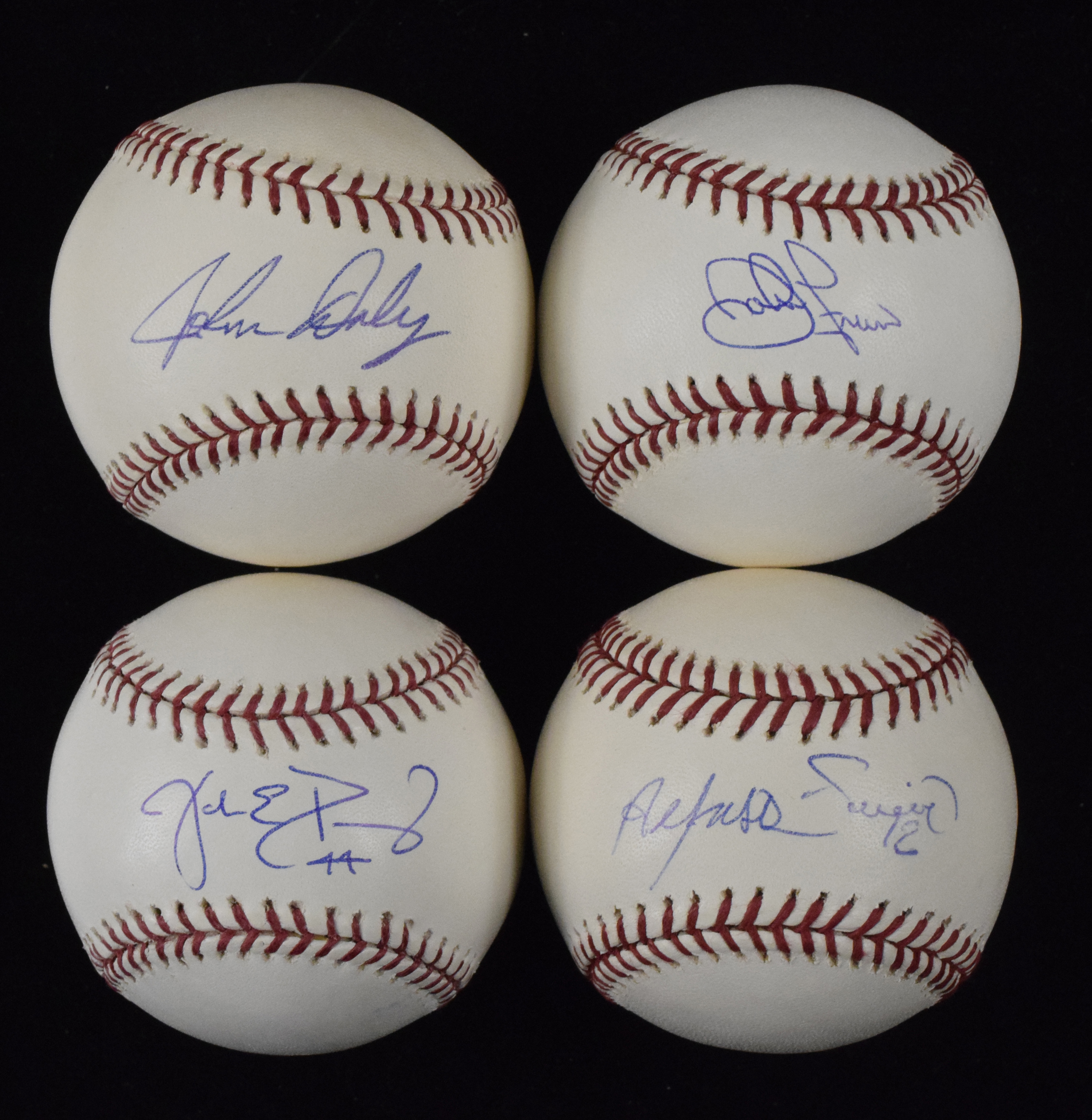 Description:Lot of (8) MLB player and golfer autographed baseballs, including John Daly (Sigs. MT). Each is individually signed on the sweet spot of a B. Selig MLB ball, with one each signed by Josh Beckett, Moises Alou, Akinori Otsuka, John Daly, Wally Joyner, Alfonso Soriano, John Franco, and Peavy. Signatures rate 9 out of 10 and balls have little to no toning: NM-NM/MT.