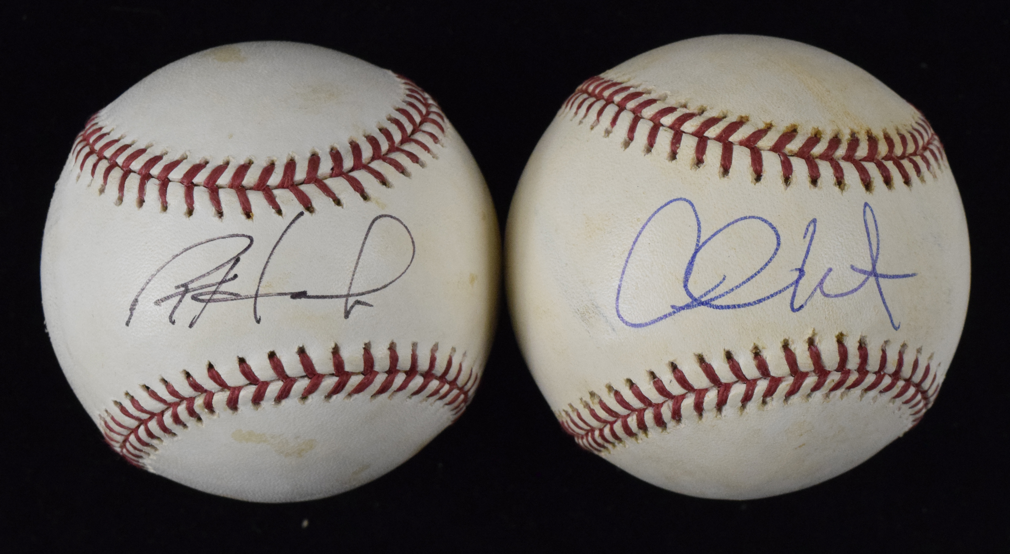 Description:Lot of (2) Phillies autographed baseballs, with Chase Utley and Ryan Howard (Sigs. NM/MT). Each is signed on the sweet spot of a B. Selig MLB baseball, with (1) Chasey Utley and (1) Ryan Howard. Signatures rate 8 out of 10 and balls have moderate toning/wear: VG/EX-EX.