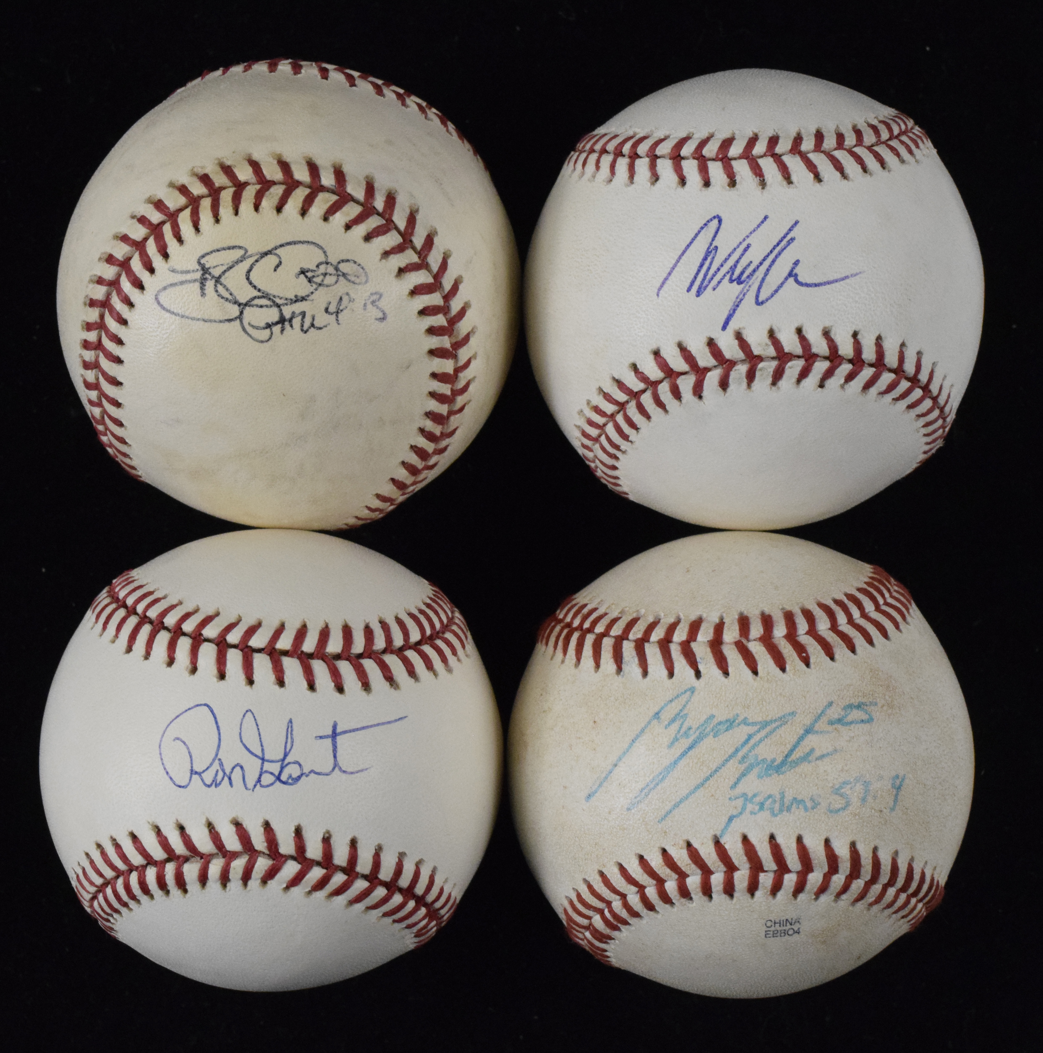 Description:Lot of (16) autographed baseballs, including Tony Clark, Ron Gant (Sigs. EX-MT). Most are on OMLB baseballs with a few others, and have been individually signed by John Lackey, Jackie Bradley Jr., Wil Myers, Bobby Dalbec, Phil Plantier, Keith Foulke, Tony Clark, Juan Rivera, Will Middlebrooks, John Valentin, Wilson Alvarez, Drew Henson, Ron Gant, Byron Buxton, Rudy Pemberton and Ian Snell. Signatures range from 6 to 9 (avg. 8) and balls have light to moderate wear/toning: VG/EX-NM/MT.