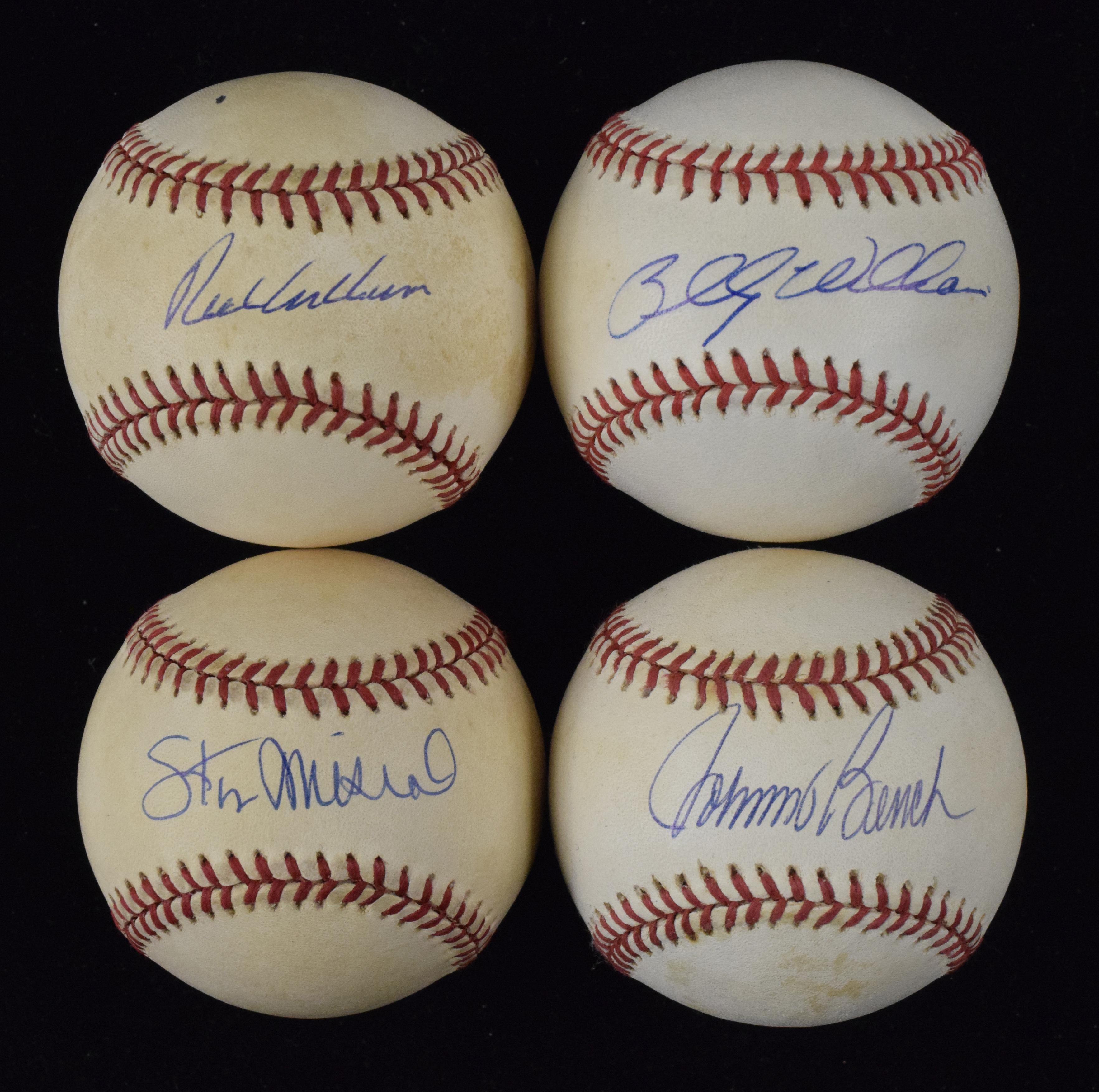 Description:Lot of (6) HOFer-autographed baseballs, with Bench, Musial and Ashburn (Sigs. NM/MT-MT). Nice assortment of single-signed baseballs, each autographed by a Hall of Famer. Includes (3) on L. Coleman N.L. balls, individually signed by Ralph Kiner, Stan Musial and Billy Williams; (1) G. Budig A.L. ball signed by Brooks Robinson with "HOF 83" inscription; and (2) W. White N.L. balls, individually signed by Johnny Bench and Richie Ashburn. Signatures rate 8/9 out of 10, and balls have light to heavy toning: VG-EX/MT.