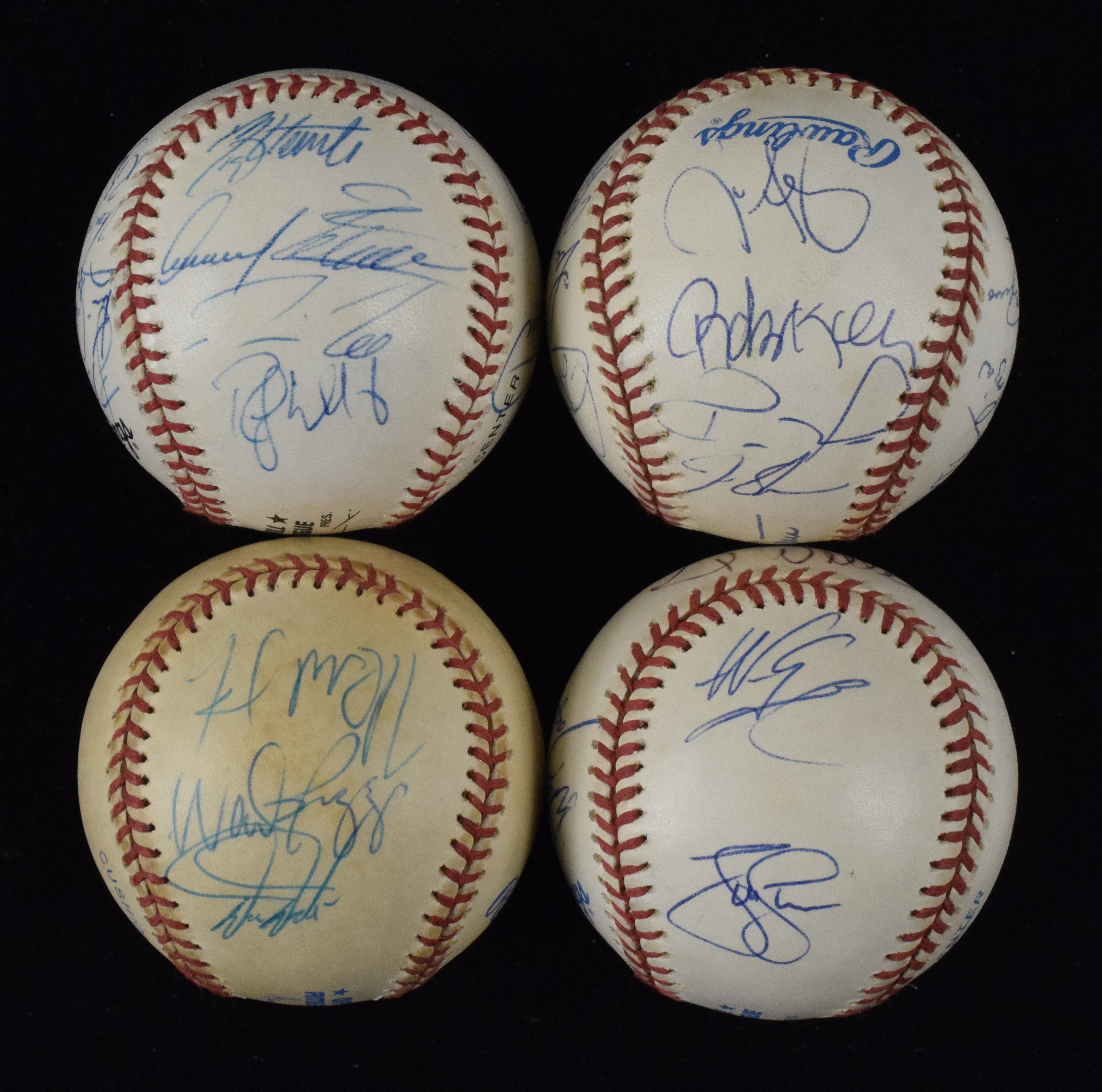 Description:Lot of (6) multi-signed baseballs, including Phillies, Rangers and Red Sox (Sigs. NM-MT). Includes (1) G. Budig A.L. ball signed by Wade Boggs, Darren Daulton and two others; (1) G. Budig A.L. ball signed by (14) c. 1998-99 Texas Rangers, including Johnny Oates, Bucky Dent, Todd Zeile, Rusty Greer and others; (1) L. Coleman N.L. ball signed by (7) c. 1999 Montreal Expos including Mike Maddux, Orlando Merced and others; (1) G. Budig ball signed by (18) c. 1998-99 Texas Rangers, including Johnny Oates, Roberto Kelly, Esteban Loaiza, Mark Mclemore, John Marzano and others; (1) L. Coleman N.L. ball signed by (15) c. 2001 Philadelphia Phillies, including Jimmy Rollins, Larry Bowa, Mike Lieberthal, Ricky Bottalico, Pat Burrell and others; (1) G. Budig A.L. ball signed by (9) c. 1997 Boston Red Sox, including Nomar Garciaparra, Jimy Williams, Mike Stanley, Troy O'Leary and others. Signatures range from 7 to 9 (avg. 8/9 out of 10, and balls have light to heavy toning.
