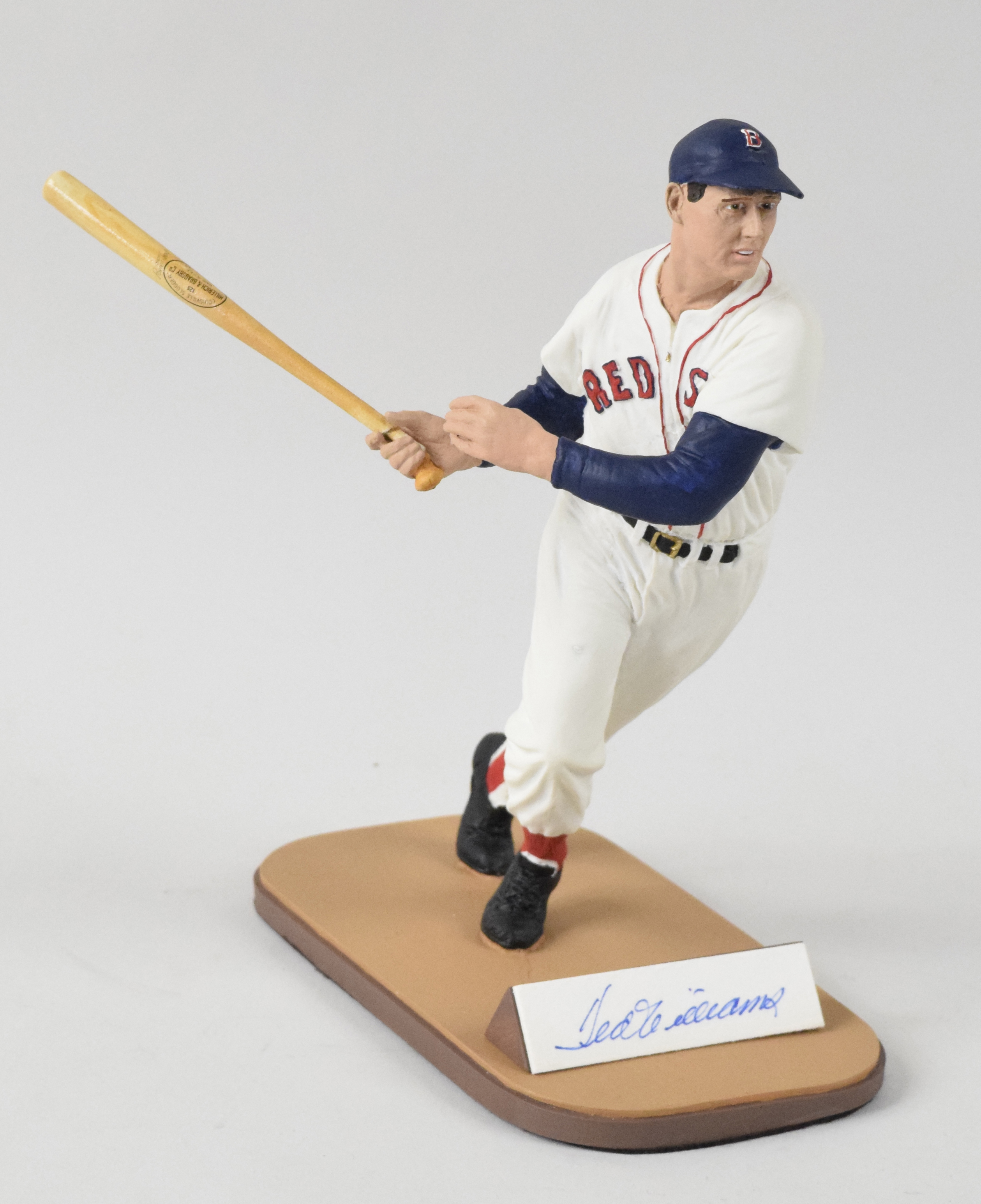Description:1989 Gartlan Ted Williams autographed figurine in original box (NM). Like-new Gartlan statue is numbered 2,632/2,654 on the base, and signed on the front by Ted Williams in blue ink, rating 9 out of 10. Figurine remains in its original packaging and box: NM. Box: EX.