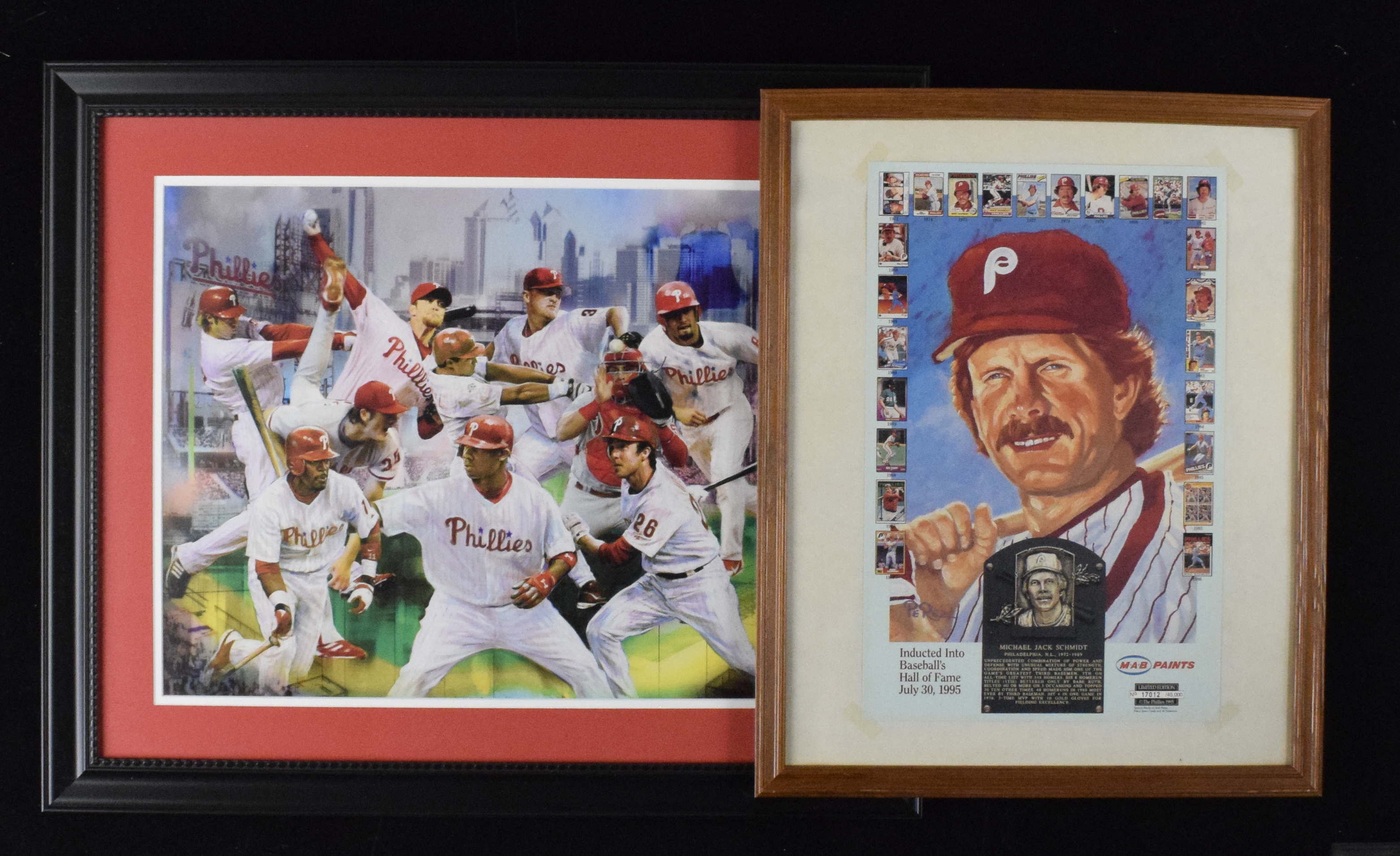 Description:Large lot of (15) Philadelphia Eagles mostly framed photos and prints (VG/EX-NM). Good assortment of Phillies photos and prints, with most framed (including two plaques) and ranging in size from 27"x23" to 9"x11." None are autographed. Subjects include 1993 Phillies, Roy Halladay, Tug McGraw, Billy Wagner, Lenny Dykstra, Mike Schmidt, Richie Ashburn, 1980 World Series, 2008 World Series, Jim Thome, Ryan Howard, Cole Hamels and Jim Bunning. Range: VG/EX-NM.