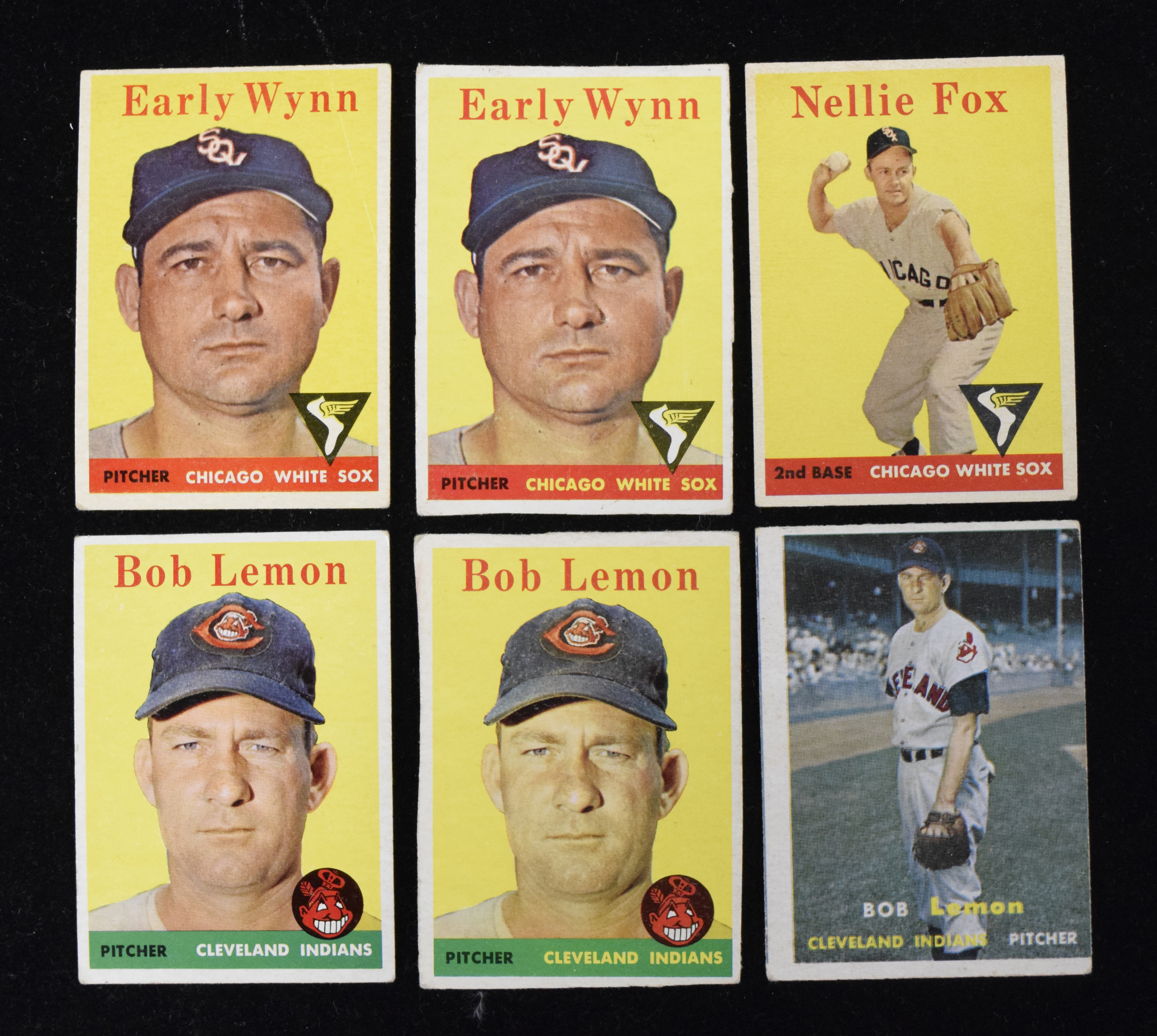 Description:Lot of (100+) 1957 and 1958 Topps cards with some HOFers (PR-VG/EX). Lot includes (28) 1957 Topps cards (no mid-series) and (75) 1958 Topps cards. Both years feature Indians and White Sox players with light to moderate duplication, with commons, minor stars and some Hall of Famers mixed in. Most appear VG-VG/EX. Range: PR-VG/EX.