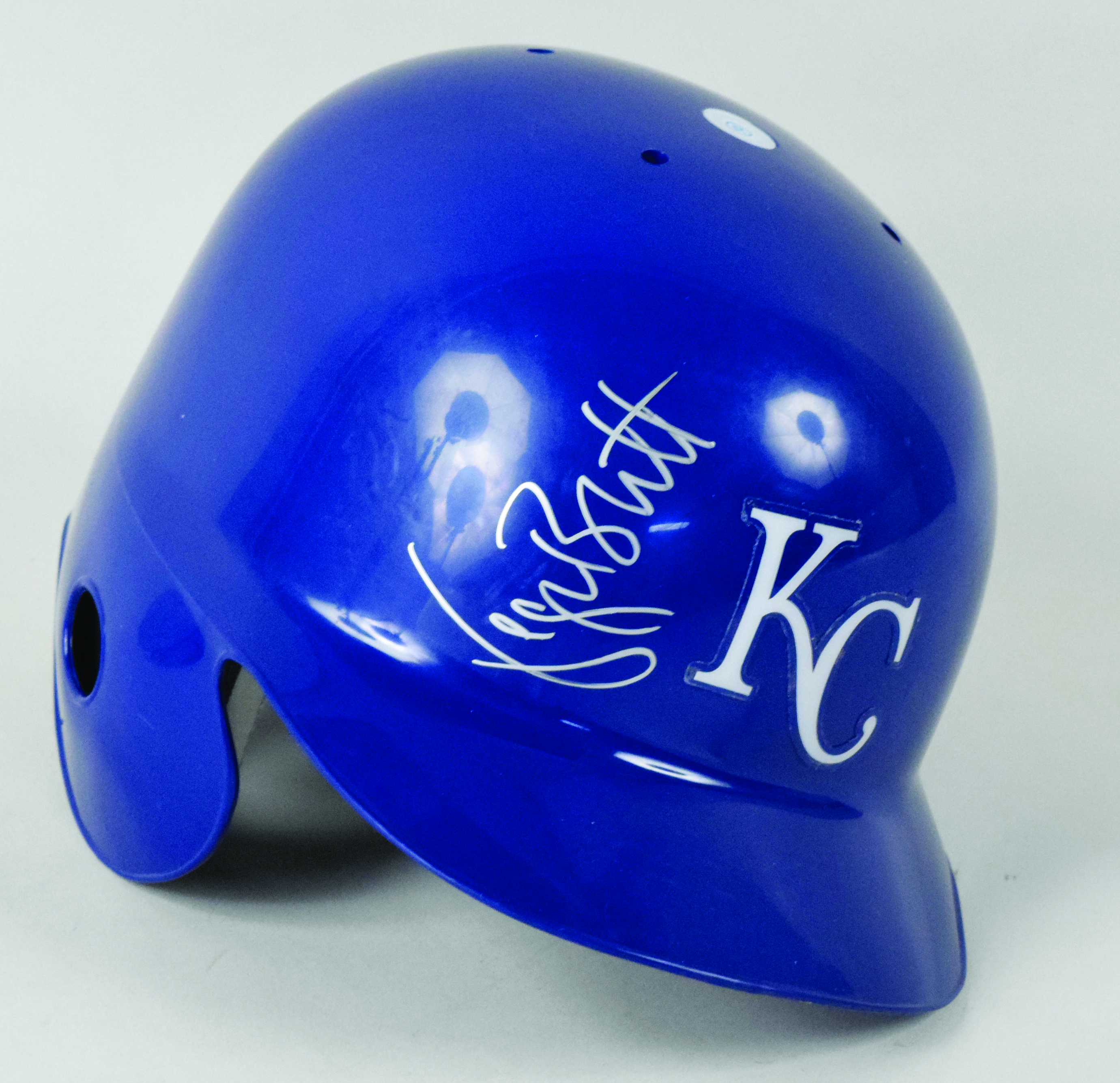 Description:George Brett signed Kansas City Royals batting helmet - JSA (NM). Rawlings size 7-3/8 Royals helmet signed by Brett in silver marker. Signature rates 9/10 out of 10. JSA serial #ed sticker is on the helmet: NM