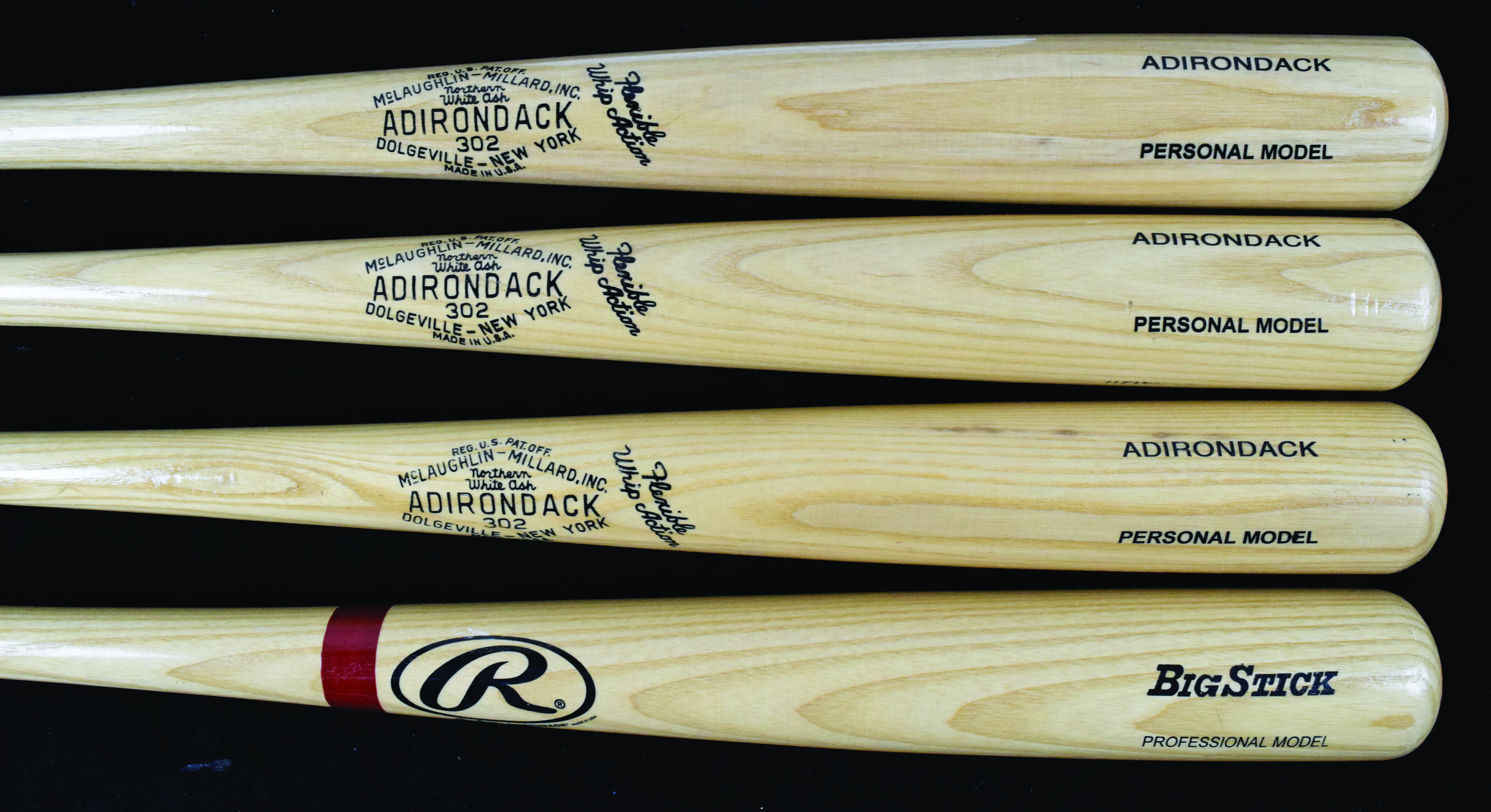 Description:Lot of (7) unused & unsigned Rawlings/Adirondack store model baseball bats (NM overall). All are full size bats with five of one design, and the other two both being different designs. Bats show minimal wear: NM overall