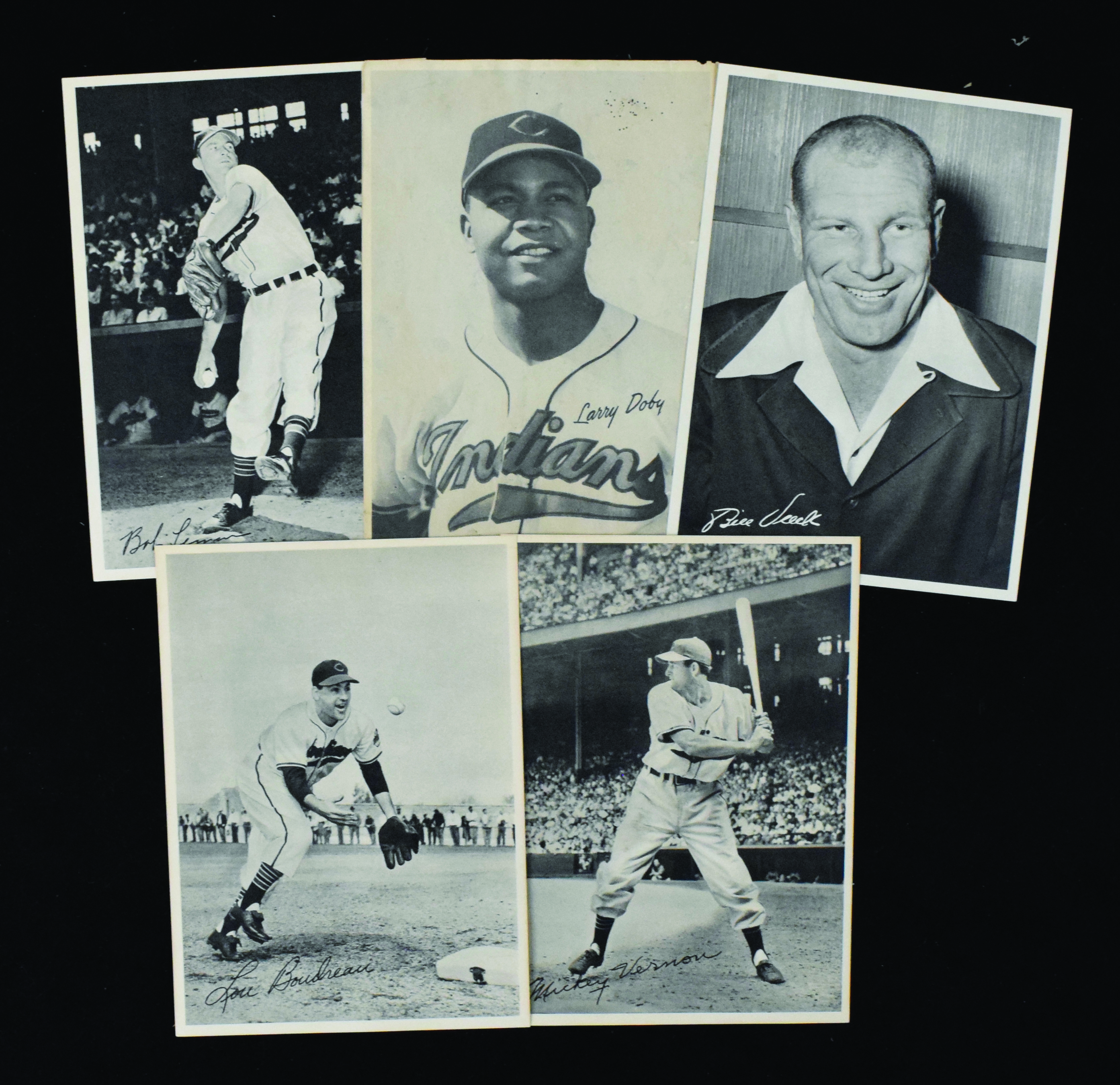 Description:Lot of (27) Cleveland Indians picture pack photos, with Lemon, Doby and Veeck (PR-EX/MT). Most are 1949 Cleveland Indians Picture Pack-Action photos, with (1) 1949 Big League Novelty Company Cleveland Indians Picture Pack Larry Doby. Also includes Bill Veeck, Bob Lemon, Lou Boudreau, Mickey Vernon, Steve Gromek, Frank Papish, Indians coaches, Ray Boone, Mike Tresh, John Berardino, (2) Thurman Tucker (one with writing on reverse), Al Burton, Sam Zoldak, Dale Mitchell, Hal Peck, Mike Garcia, Jim Hegan, Al Rosen, Bob Kennedy, Bobby Avila, Gene Bearden, Indians stadium, Ken Keltner, Allie Clark and Luke Easter. Most appear VG/EX. Range: PR-EX/MT.