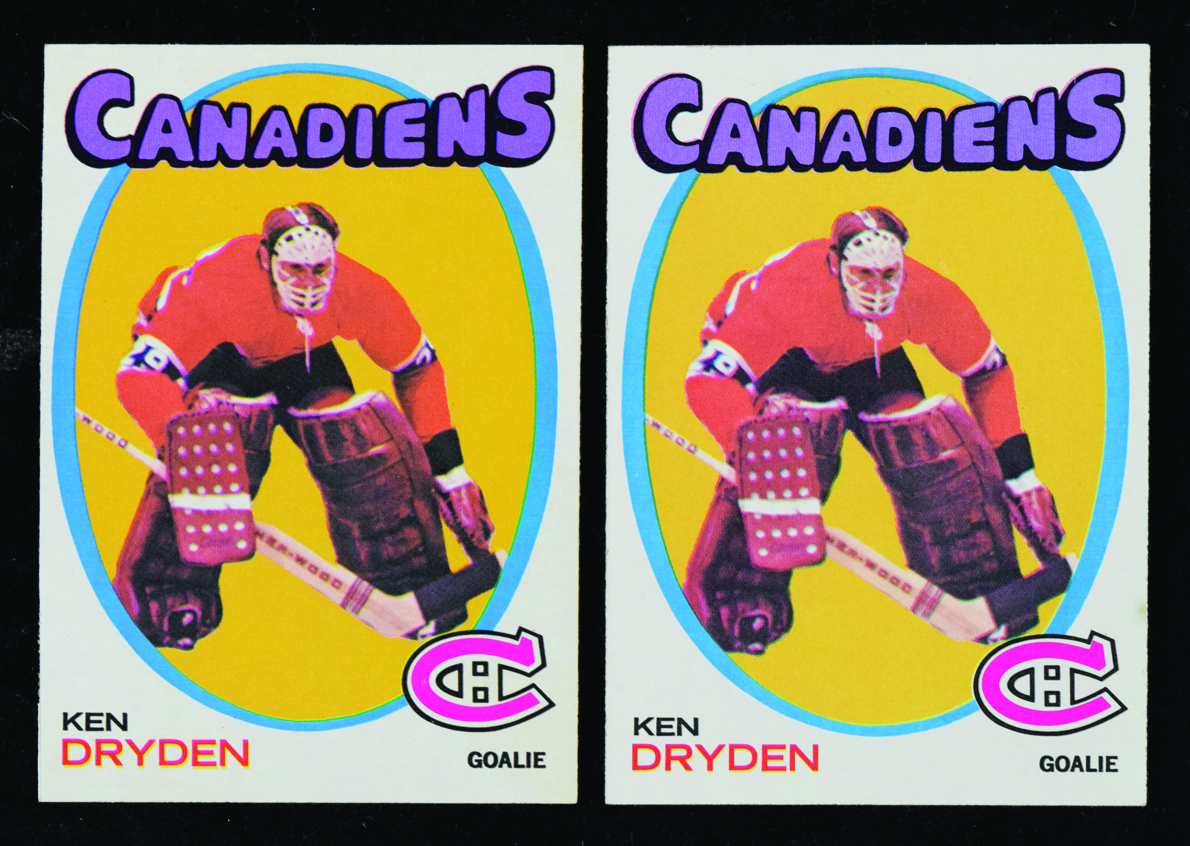 Description:Nice lot of (2) 1971 Topps #45 Ken Dryden RCs (EX-EX/MT). Very nice pair of #45 Ken Dryden RCs, with one copy (EX) and the other (EX/MT). Backs of both cards are clean. Range: EX-EX/MT.