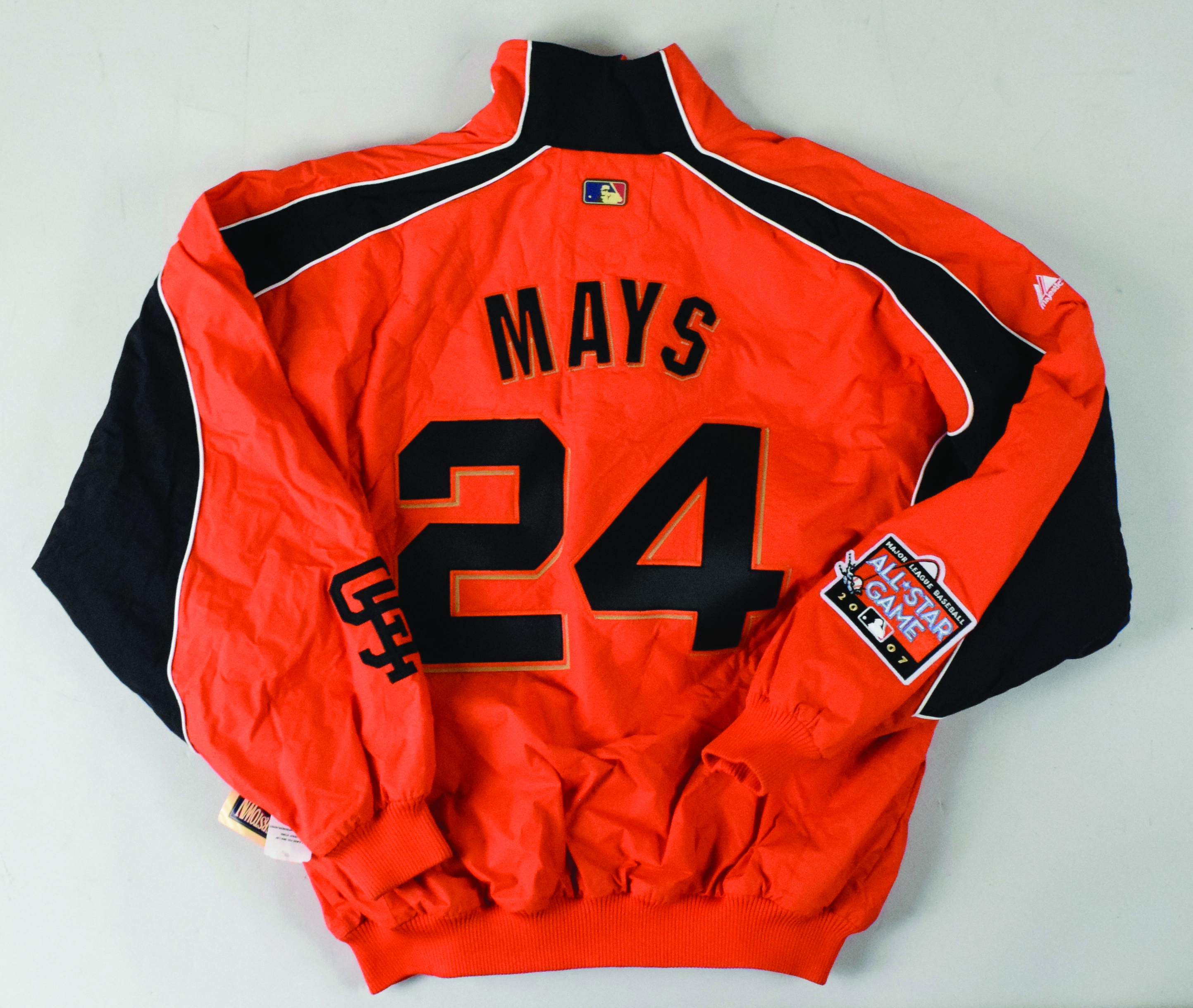 Description:2007 MLB All-Star Game San Francisco Giants jacket from the Willie Mays Collection (NM - New with tags) Unused Cooperstown Collection cold weather nylon jacket with San Francisco Giants team name across the front and "Mays 24" in tackle twill on the back. Size XL. Includes certificate of provenance from the Willie Mays Collection: NM-MT ($300-$500)