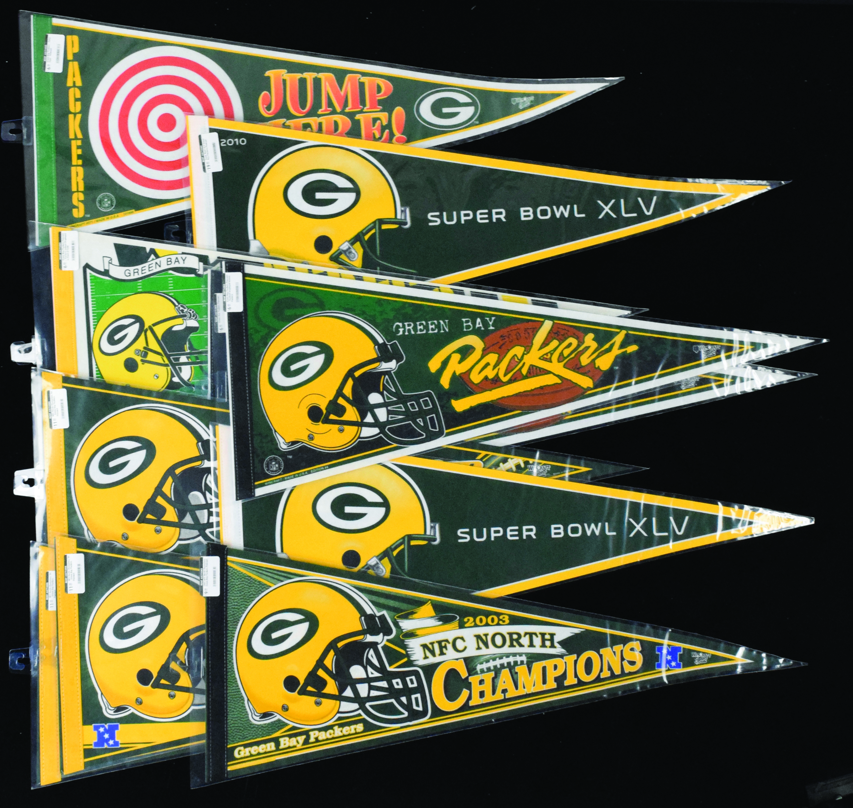 Description:Lot of (49) Green Bay Packers pennants (NM-NM/MT overall). All are full size pennants mainly from the 1990s into the 2000s. Minimal wear throughout the lot: NM-NM/MT overall 2100000383078 (HASS)