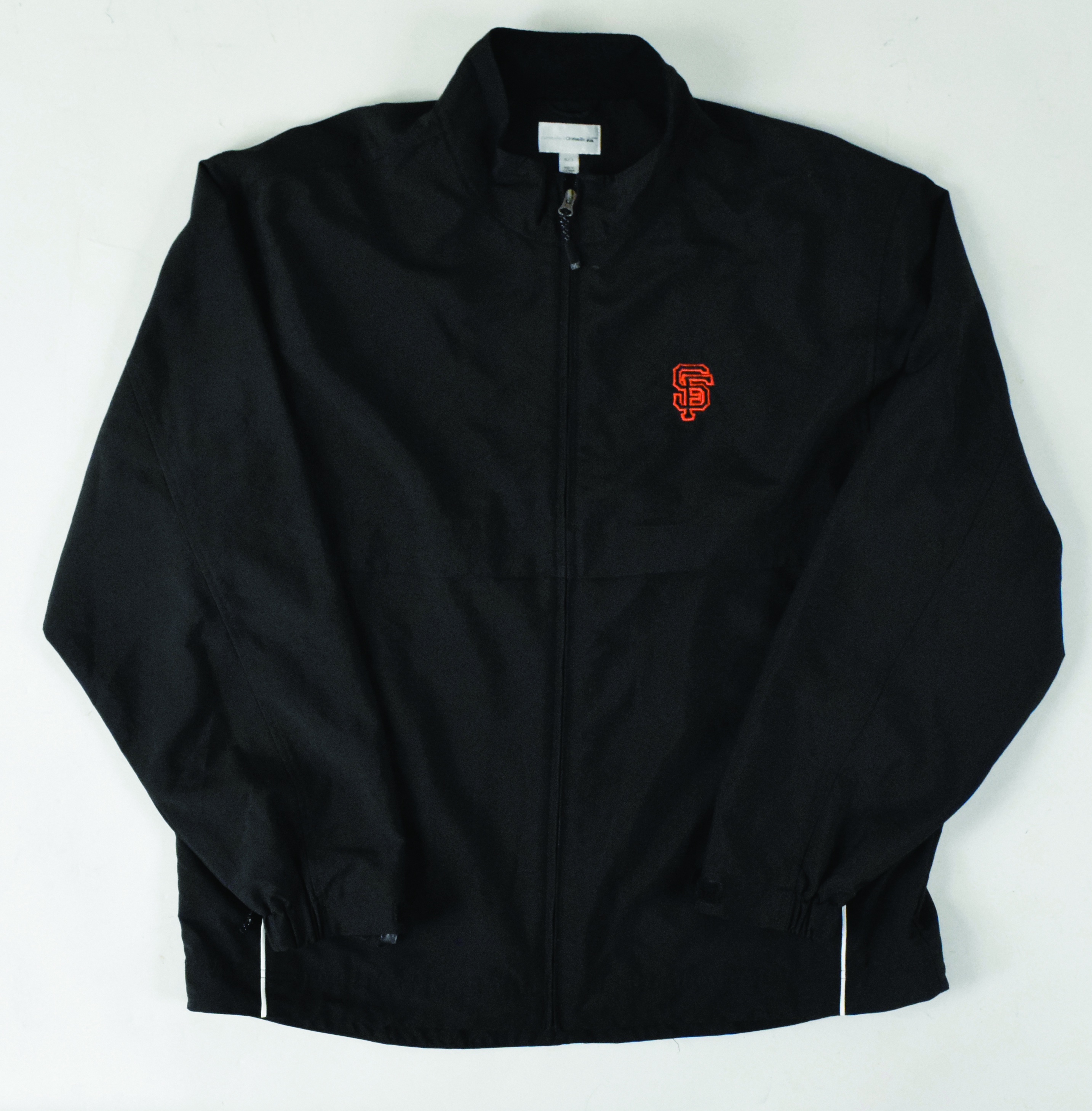 Description:Willie Mays' personal San Francisco Giants windbreaker (EX) Long sleeve jacket by Cutter & Buck (size XL) has the Giants "SF" logo embroidered on left front chest. Light evident use/wear. Includes certificate of provenance from the Willie Mays Collection: EX