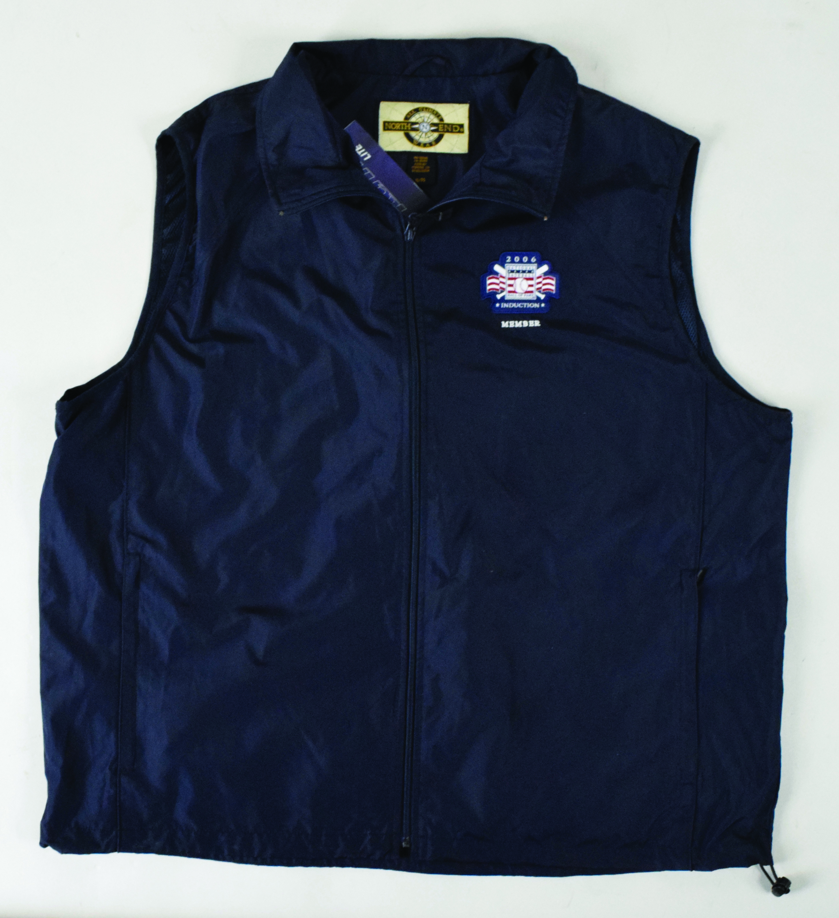 Description:Willie Mays' 2006 Baseball Hall of Fame "Member" vest (EX/MT-NM) North End brand vest has a "2006 National Baseball Hall of Fame" logo patch on the left front chest with "Member|" embroidered below. Unworn with original tag attached. Includes certificate of provenance from the Willie Mays Collection: EX/MT-NM