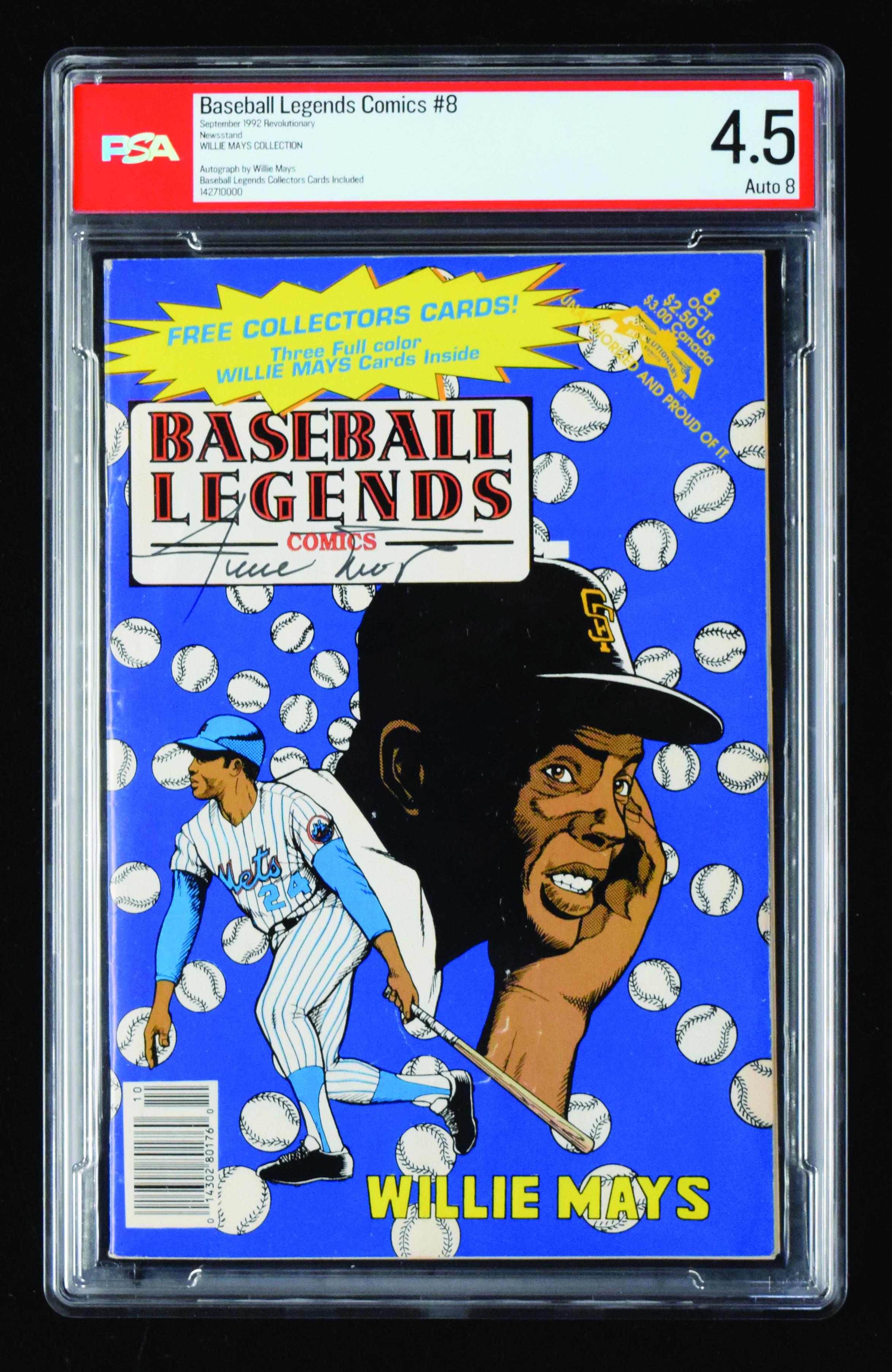 Description:Willie Mays autographed Baseball Legends comic book (PSA 4.5 with 8 auto). Graded by PSA with "Willie Mays Collection" pedigree noted on the label: PSA 4.5 with 8 auto