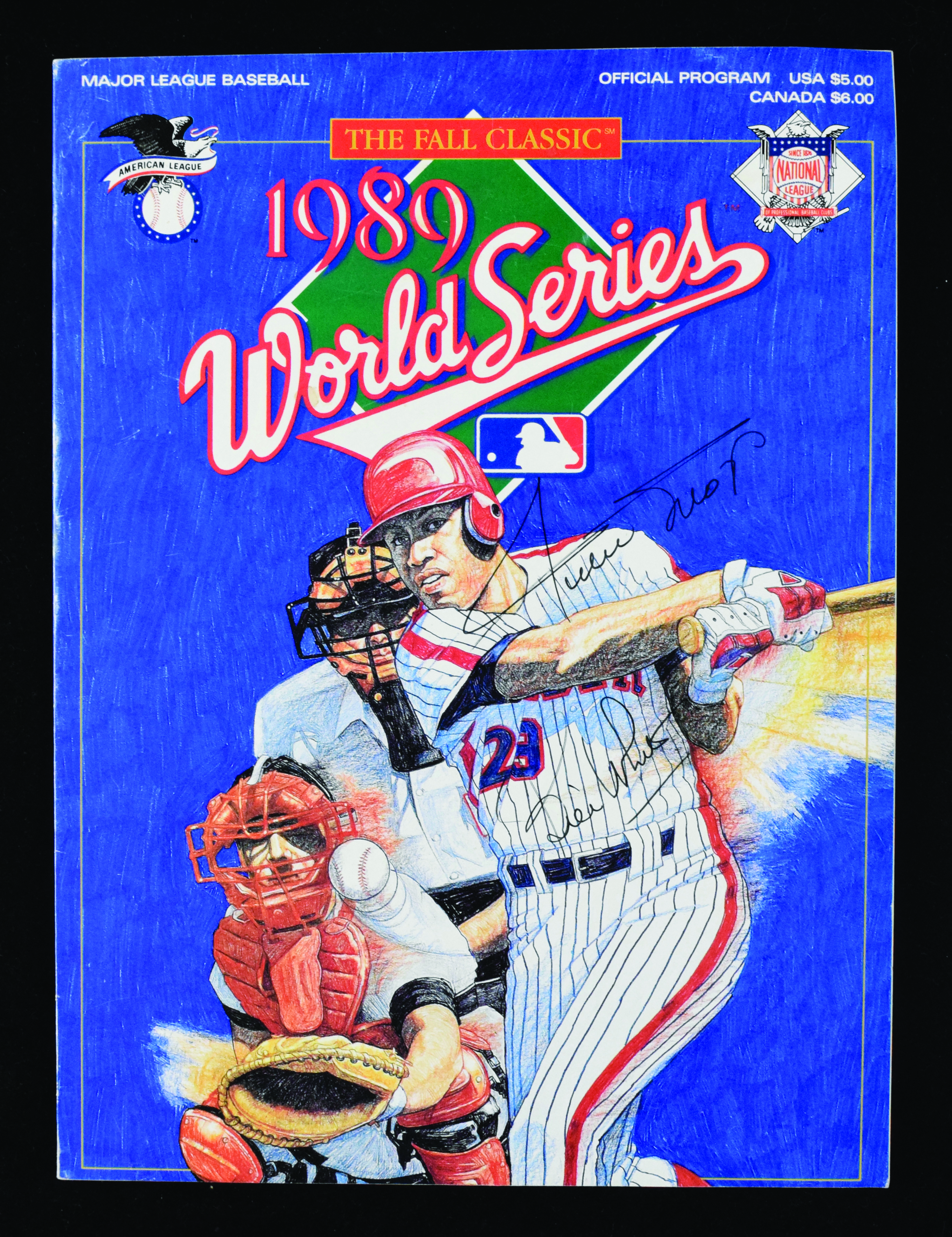 Description:Willie Mays and Bill White autographed 1989 World Series program (EX/MT-NM) Original program signed on the cover by both in rating 7 (white) to 8/9 (Mays) out of 10. Touch of very light wear. Includes certificate of provenance from the Willie Mays Collection: EX/MT-NM