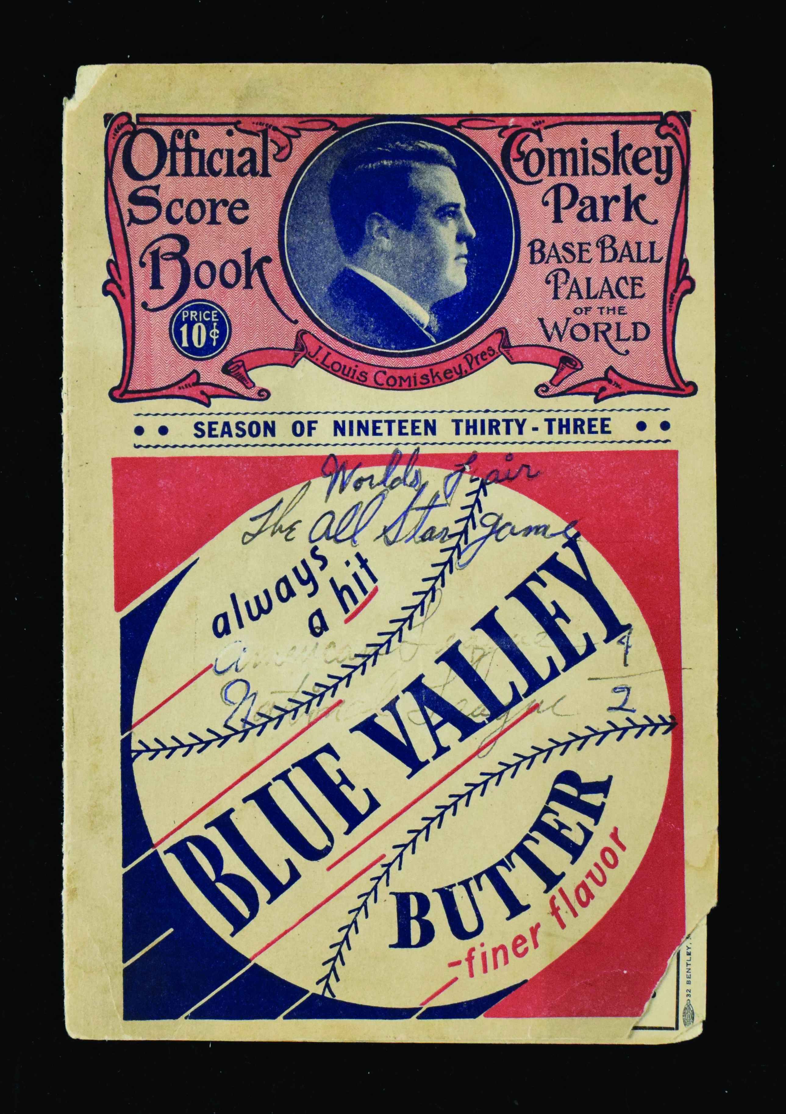 Description:Inaugural 1933 MLB All-Star Game scorecard (GD). Comiskey Park scorecard from the first All-Star Game remains unscored, but with some interesting handwritten notes including "Worlds fair" "The All Star game" and the score written on the cover, along with Babe Ruth's 3rd inning HR circled on the interior scorecard and "The greatest teams" "The game of the century" written below. Age and handling wear including corner chips: GD ($500-$750)