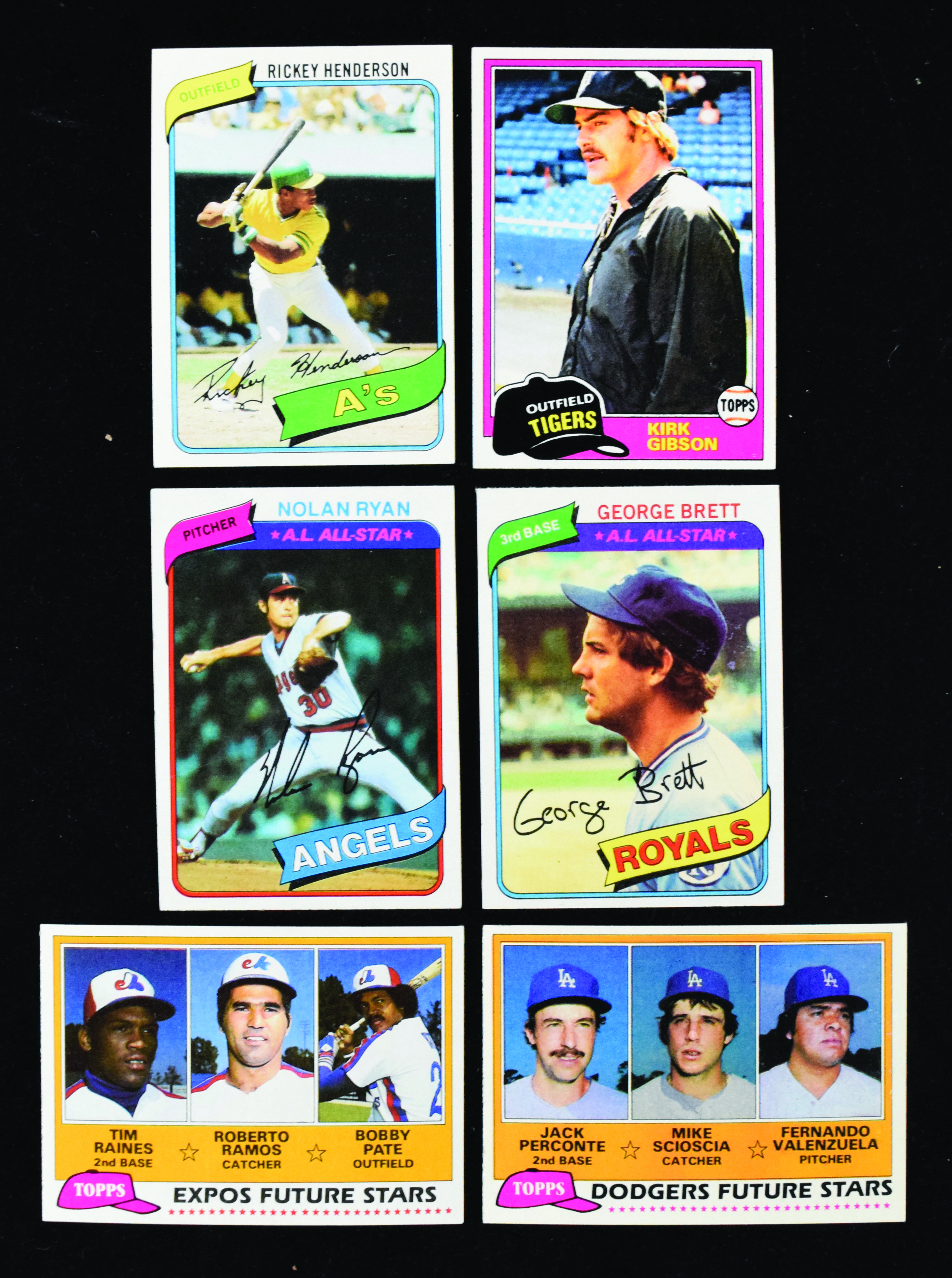 Description:Lot of (2) Topps complete sets: 1980 and 1981 with Rickey Henderson and Tim Raines RCs (NM-NM/MT). Pair of complete sets includes (1) 1980 Topps with #482 Rickey Henderson RC (NM) and (1) 1981 Topps with #315 Kirk Gibson RC (NM), 302 Fernandoz Valenzuela RC (NM and 479 Tim Raines RC (NM/MT). Balance of the cards in both sets appear mostly NM-NM/MT with some lesser sprinkled around.