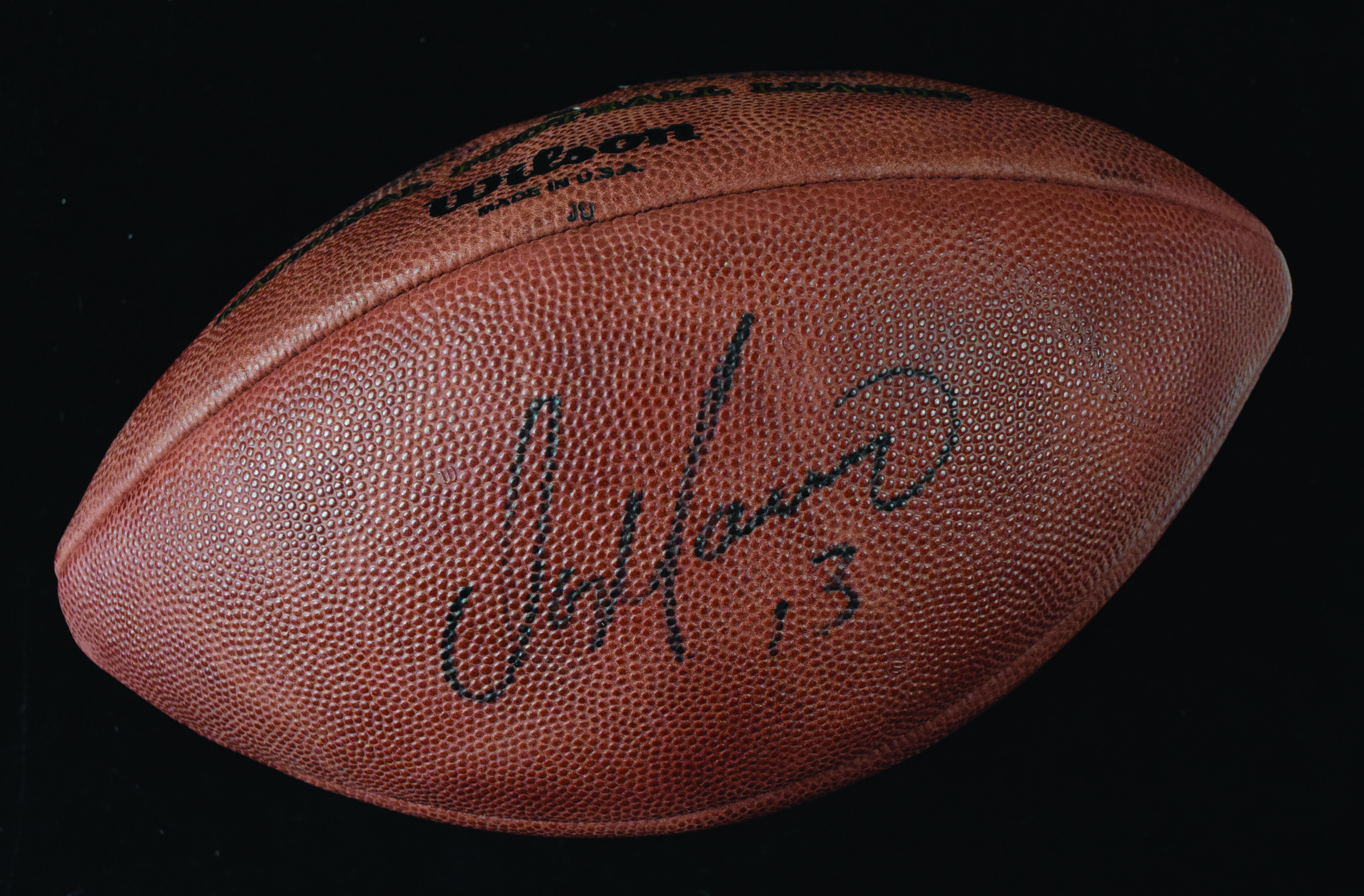 Description:Dan Marino autographed P. Tagliabue football with Beckett authentication (Sig. NM/MT). Wilson P. Tagliabue football has been signed in black marker by Dan Marino with "13" inscription, rating 8 out of 10. Ball is mostly deflated and it is unknown if will hold additional air: EX.