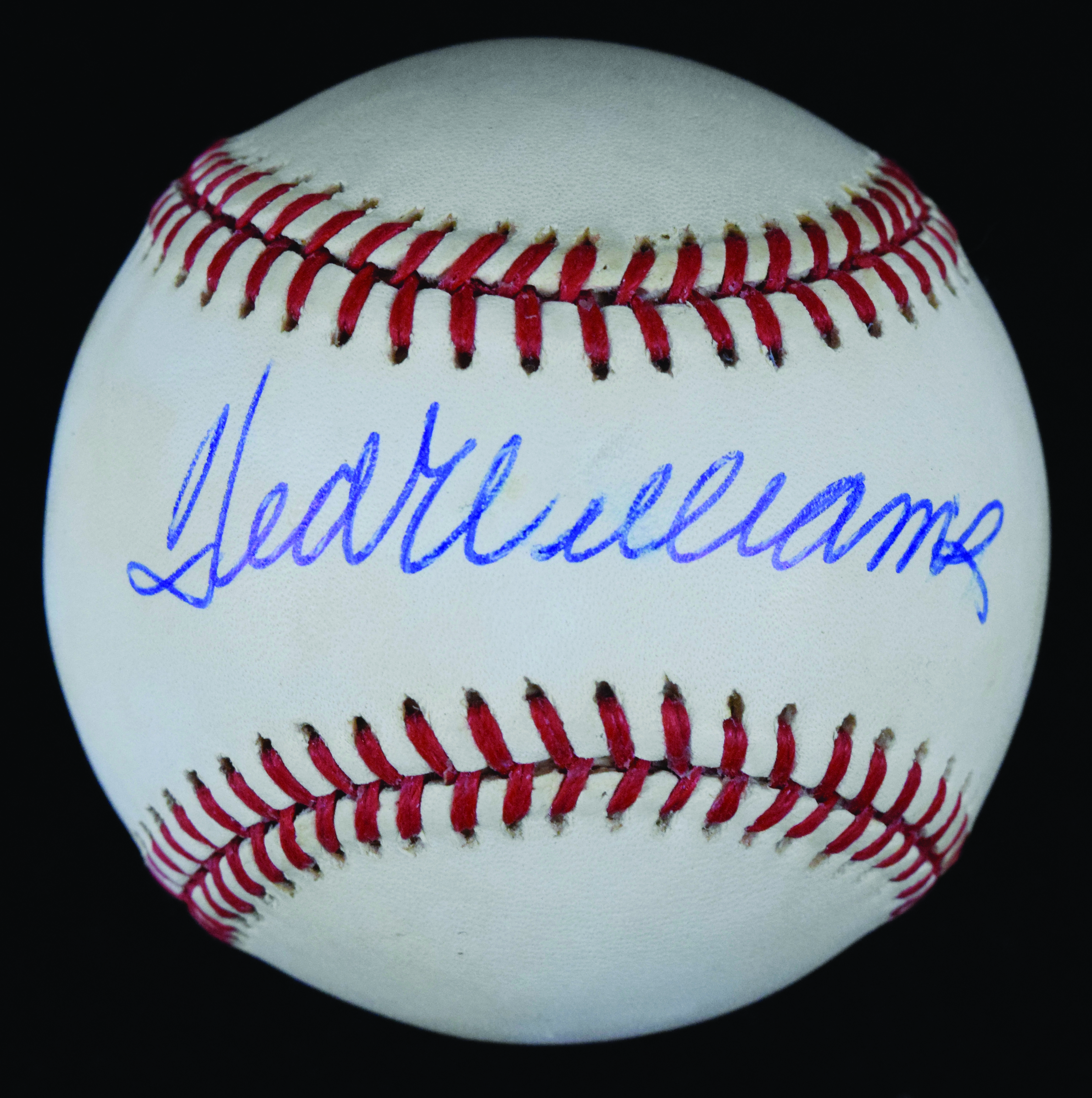 Description:Ted Williams single signed baseball (EX-EX/MT) Rawlings B.Brown Official American League baseball has been signed in ink rating 7 out of 10. Touch of light toning: EX-EX/MT