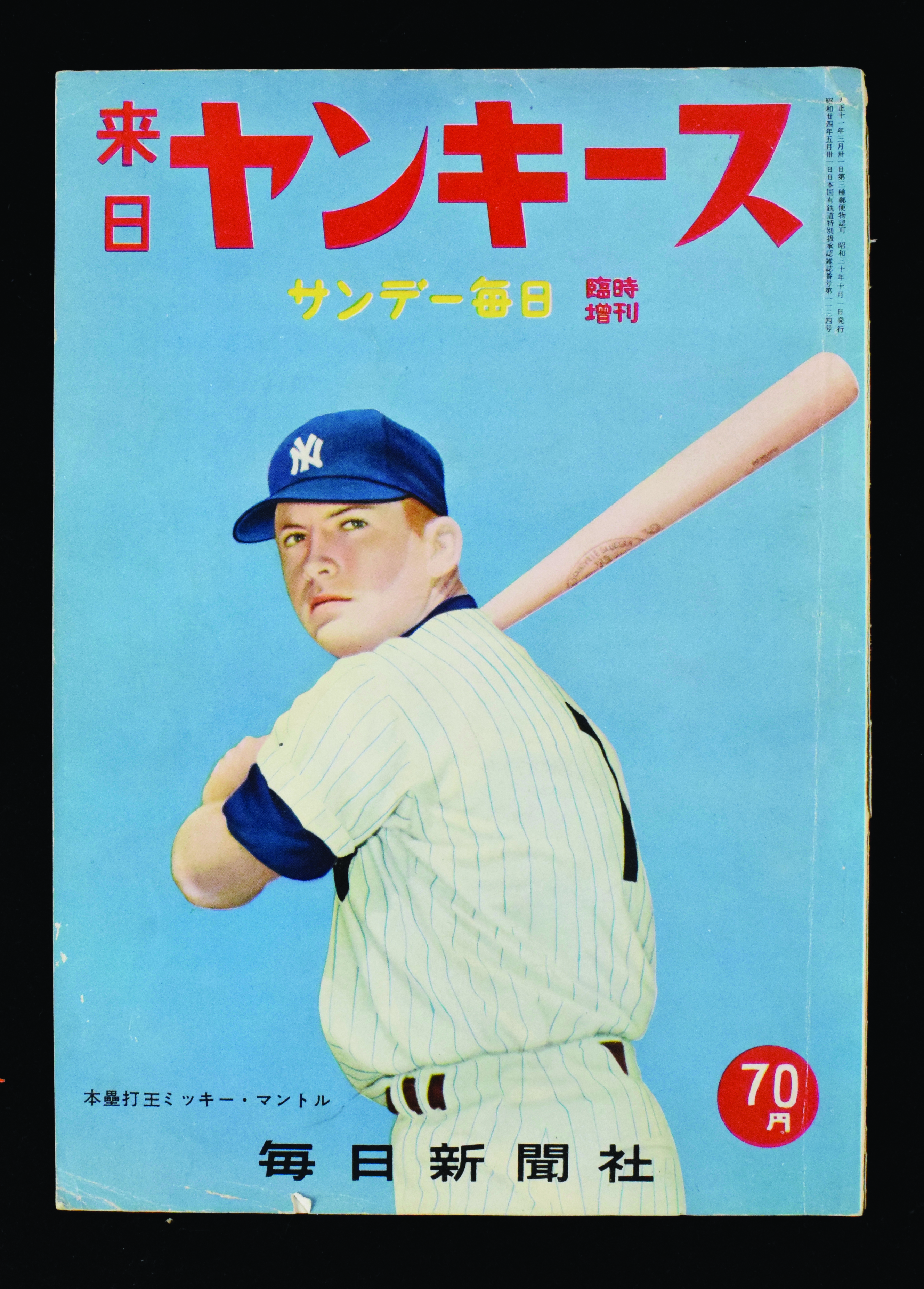 Description:New York Yankees 1955 Tour Of Japan publication with Mickey Mantle cover (VG). Japanese language publication issued in 1955 for the Yankees Goodwill Tour with an image of Mantle pictured on the cover. Fairly clean interior, but cover has some wear around the corners and edges: VG