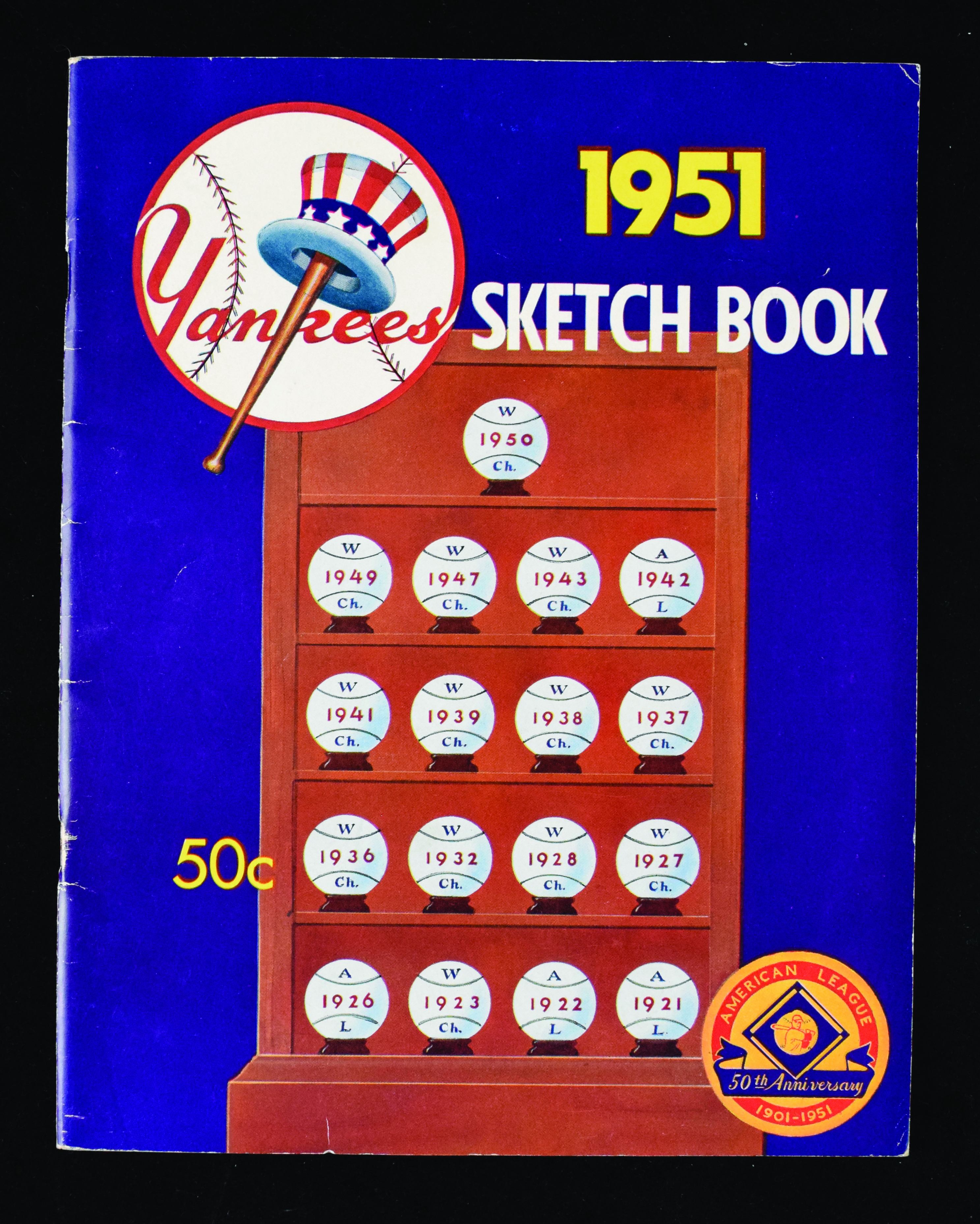 Description:1951 New York Yankees sketch book with rookie Mantle (EX). Yearbook publication with Mickey Mantle pictured on page 16. Clean interior, but cover has some light wear mainly along the spine: EX