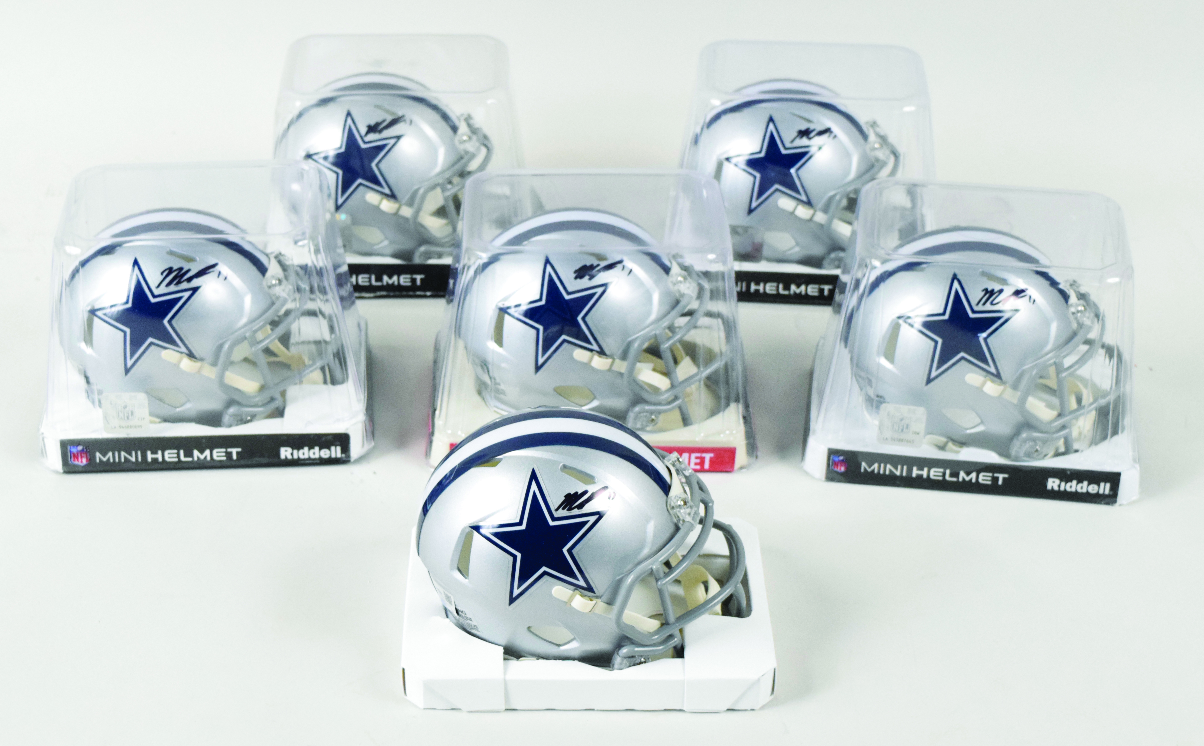 Description:Lot of (6) Micah Parsons signed Dallas Cowboys mini helmets - Fanatics (NM-NM/MT). Parsons signed each helmet in black marker. Signatures rate 8 to 9/10 out of 10. Fanatics serial #ed hologram sticker is on each helmet: NM-NM/MT 2100000375851 (times 4), 2100000375967 (times 2)