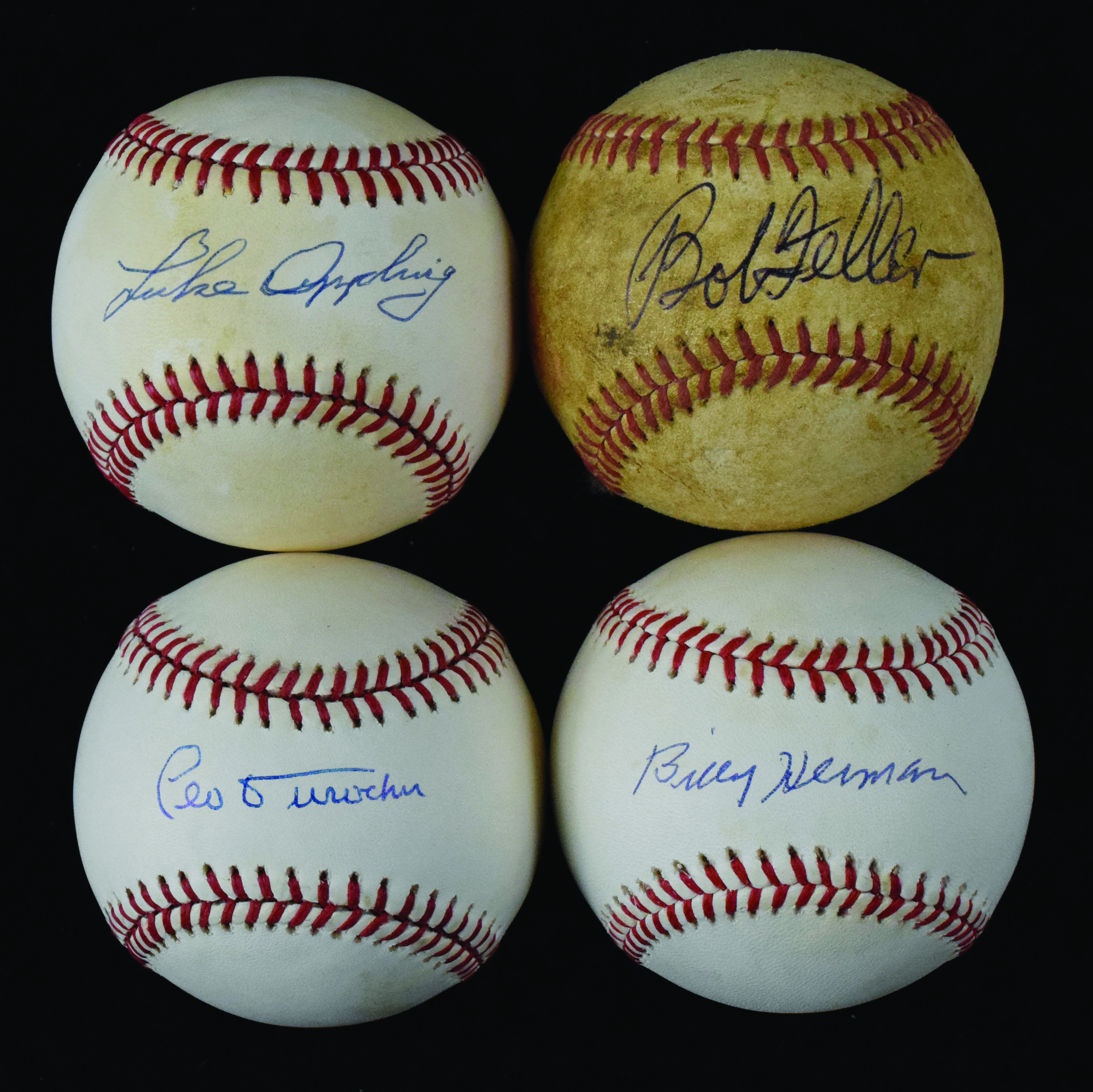Description:Lot of (5) Hall Of Famers signed baseballs (GD-EX/MT). Includes B.Brown AL ball (toning) signed by Luke Appling, heavily used ball signed by Bob Feller, W.White NL ball (light toning) signed by Billy Herman, W.White NL ball (light toning) signed by Leo Durocher, and B.Brown AL ball (toning) signed by Jim Palmer. Signatures rate 7/8 to 10 (avg 8/9) out of 10: GD-EX/MT