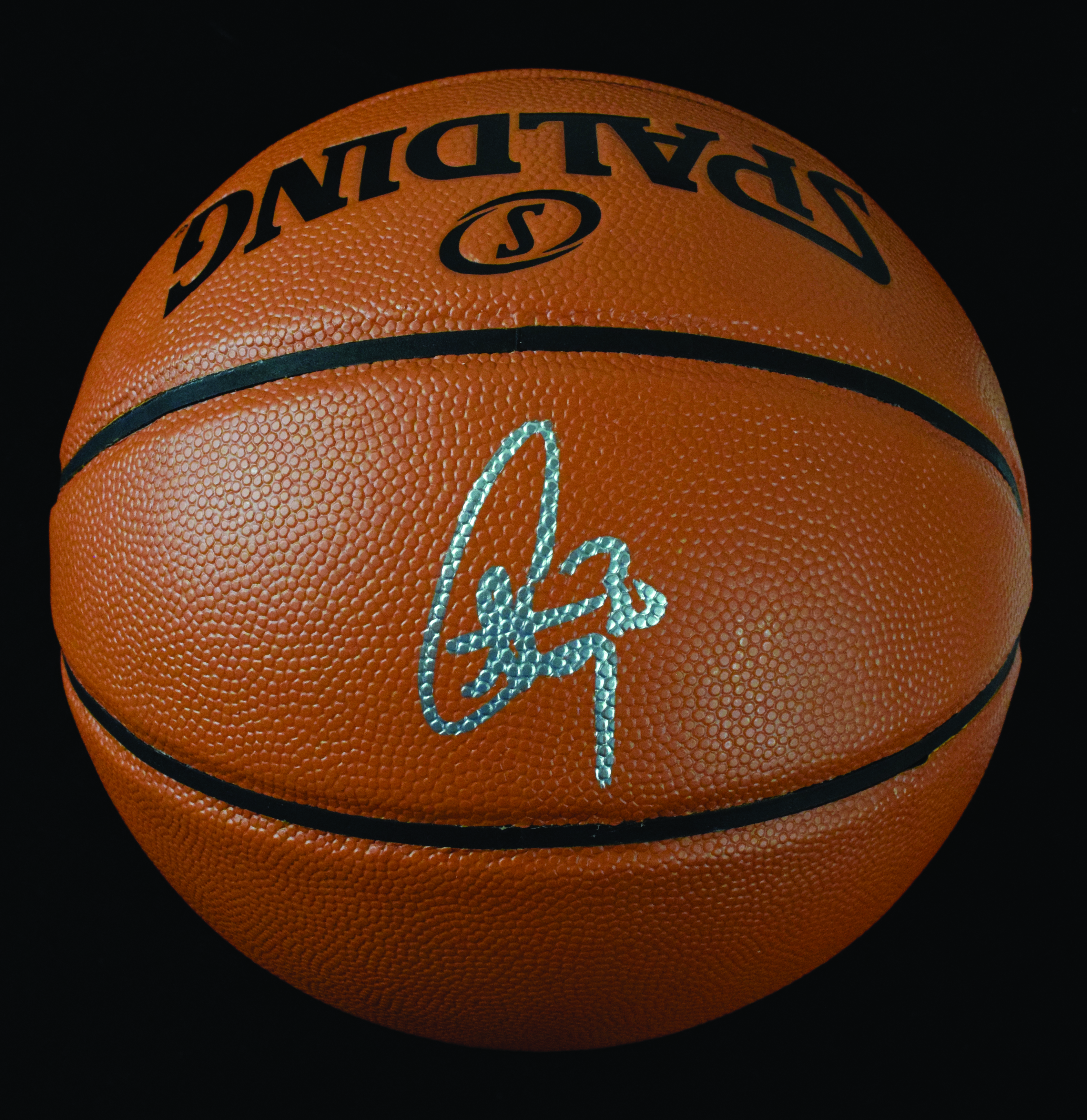 Description:Stephen Curry autographed Spalding basketball with Fanatics cert & display case (Sig. MT). A. Silver Spalding Game Ball Series basketball has been signed in silver marker by three point king Stephen Curry, rating 9 out of 10. A Fanatics authentication sticker is affixed to the basketball, and a basic cert and Fanatics bag are also included. Basketball, housed in an attractive "2017 NBA Champions" display case, is slightly deflated: NM. ($500-$1,000)