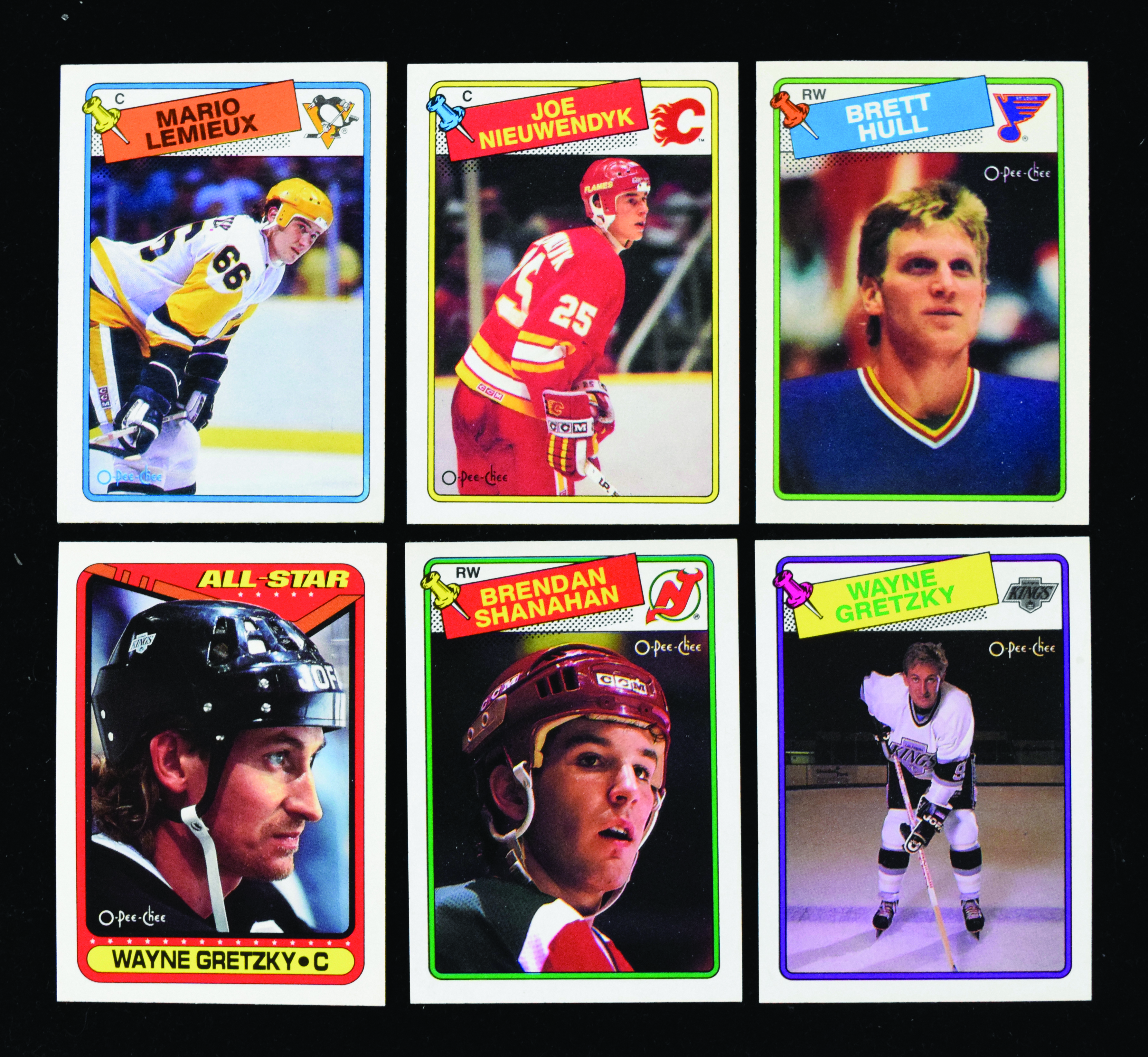 Description:Lot of (2) O-Pee-Chee hockey complete and near-complete sets, with 1988 & 1990 (NM/MT-MT overall). Both years are housed in binders in team order, with (1) 1988-89 OPC complete set of (264) cards with #66 Brett Hull RC (NM/MT) and (1) 1990-91 OPC near-complete set (missing numerous cards but with many stars. Most cards appear NM/MT-MT overall, with a few likely less here and there.