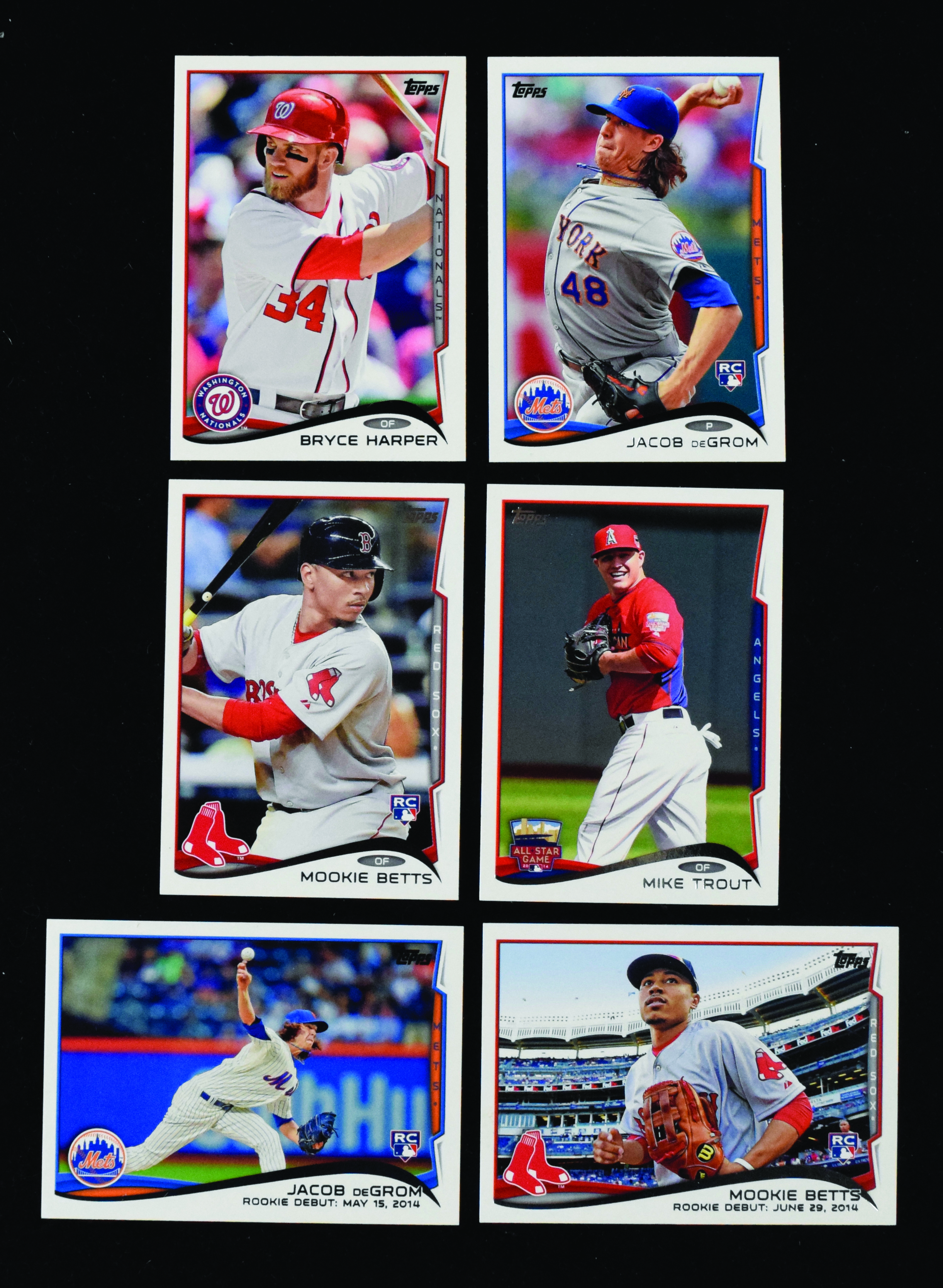 Description:2014 Topps and 2014 Topps Update complete sets with Betts, deGrom RCs (MT overall). Lot includes (1) 2014 Topps base and (1) 2014 Topps Update set, both housed in pages and a binder in team order. Update set is highlighted by the rookie cards #US-26 of Mookie Betts and Jacob deGrom, both of which appear MT or better. Sets appear complete but have not been checked card-by-card. Cards appear MT or better overall.