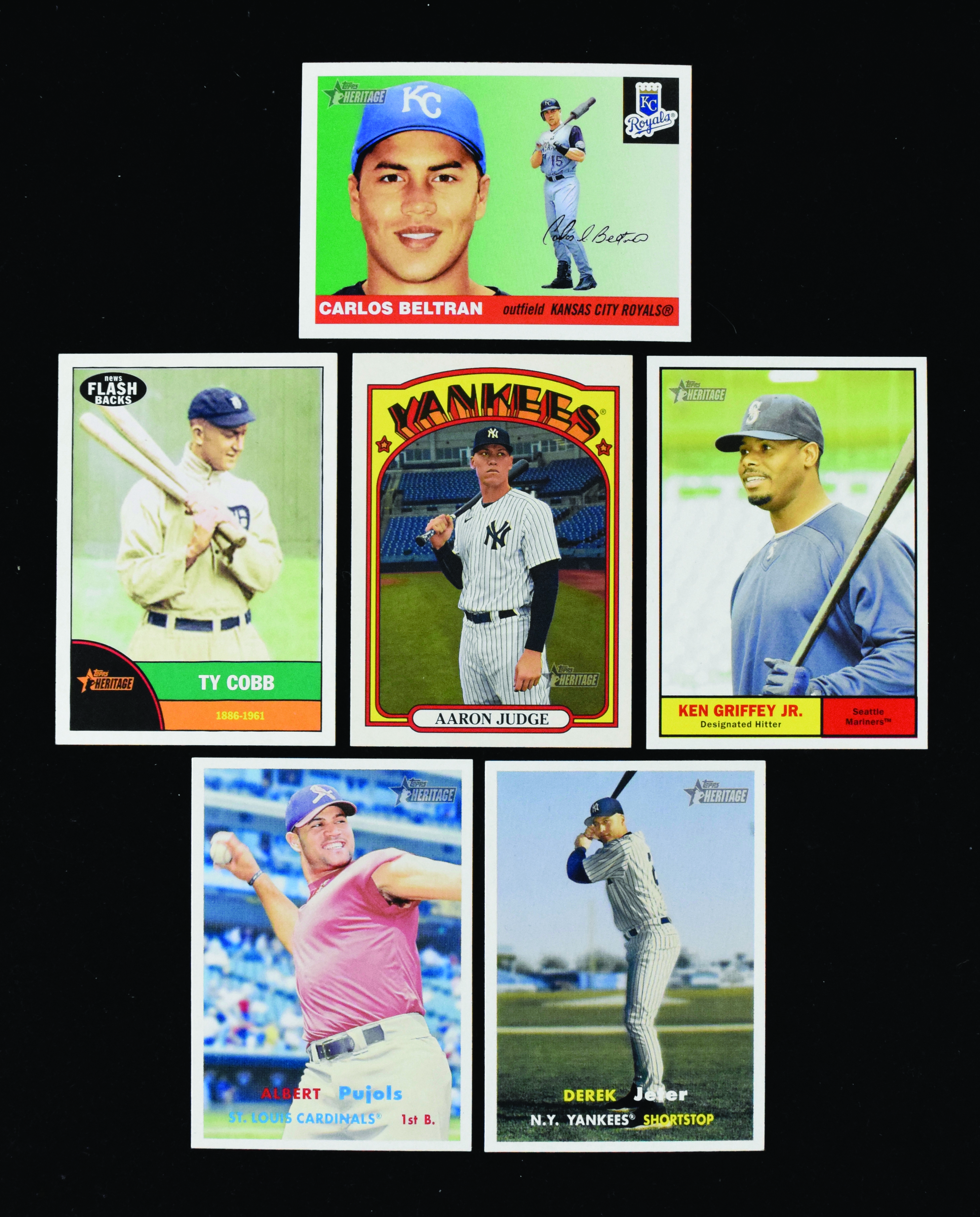 Description:Lot of (4) Topps Heritage complete sets, with 2004, 2006, 2010 and 2021 (MT overall). Sets are housed in pages and binders in team order and appear complete, though they have not been checked card-by-card and are not guaranteed as such due to team collation. Includes (1) 2004 Heritage set, modeled after the 1955 Topps set; (1) 2006 Heritage set, modeled after the 1957 Topps set; (1) 2010 Heritage set (with four insert sets), modeled after the 1961 Topps set and (1) 2021 Heritage set, modeled after the 1972 Topps set. Most cards appear MT or better.