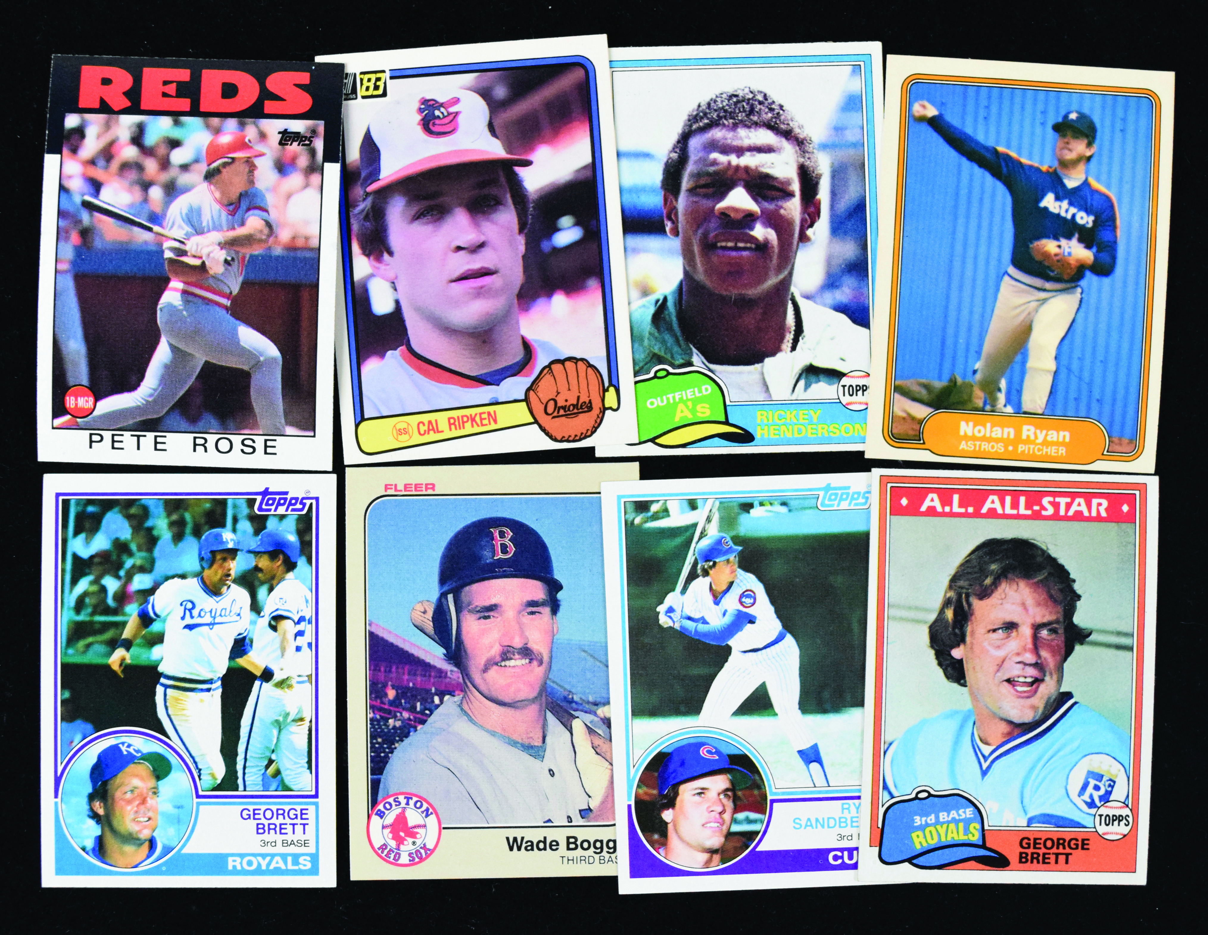 Description:Lot of approx. (7,500) 1980-1990 baseball cards with HOFers and RCs (NM-NM/MT+ overall). Large, mixed-brand assortment of baseball cards includes mostly cards from 1980-1990, with some newer, misc. items and also some 1980s minor league cards. Brands include Topps, Donruss, Fleer and others, with many in team order, including Hall of Famers and some RCs, with others waiting to be found. Most cards appear NM-NM/MT or better, though there are some less here and there.