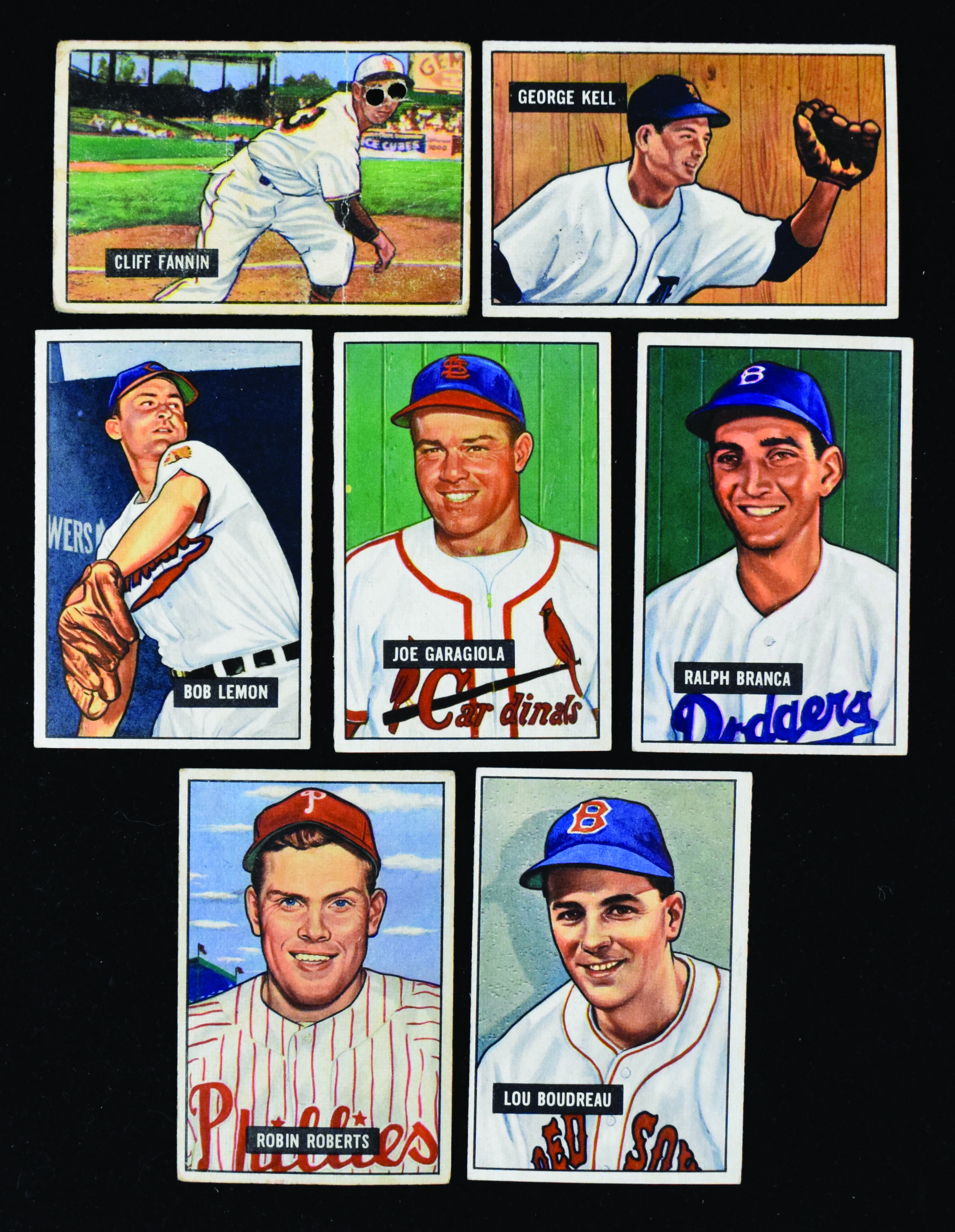 Description:Lot of (56) diff. 1951 Bowman cards with minor stars and HOFers (PR-EX/MT). Lot includes (56) different cards with mostly minor stars and commons from #s 3- 144, plus one high number #244 (hole-punched) and several Hall of Famers. Highlights include #s 3 Robin Roberts, 62 Lou Boudreau, 53 Bob Lemon, 46 George Kell, 143 Ted Kluszewski, 126 Bobby Thomson, 56 Ralph Branca, 122 Joe Garagiola RC and 15 Johnny Pesky. Most appear VG-VG/EX with some better. Range: PR-EX/MT.