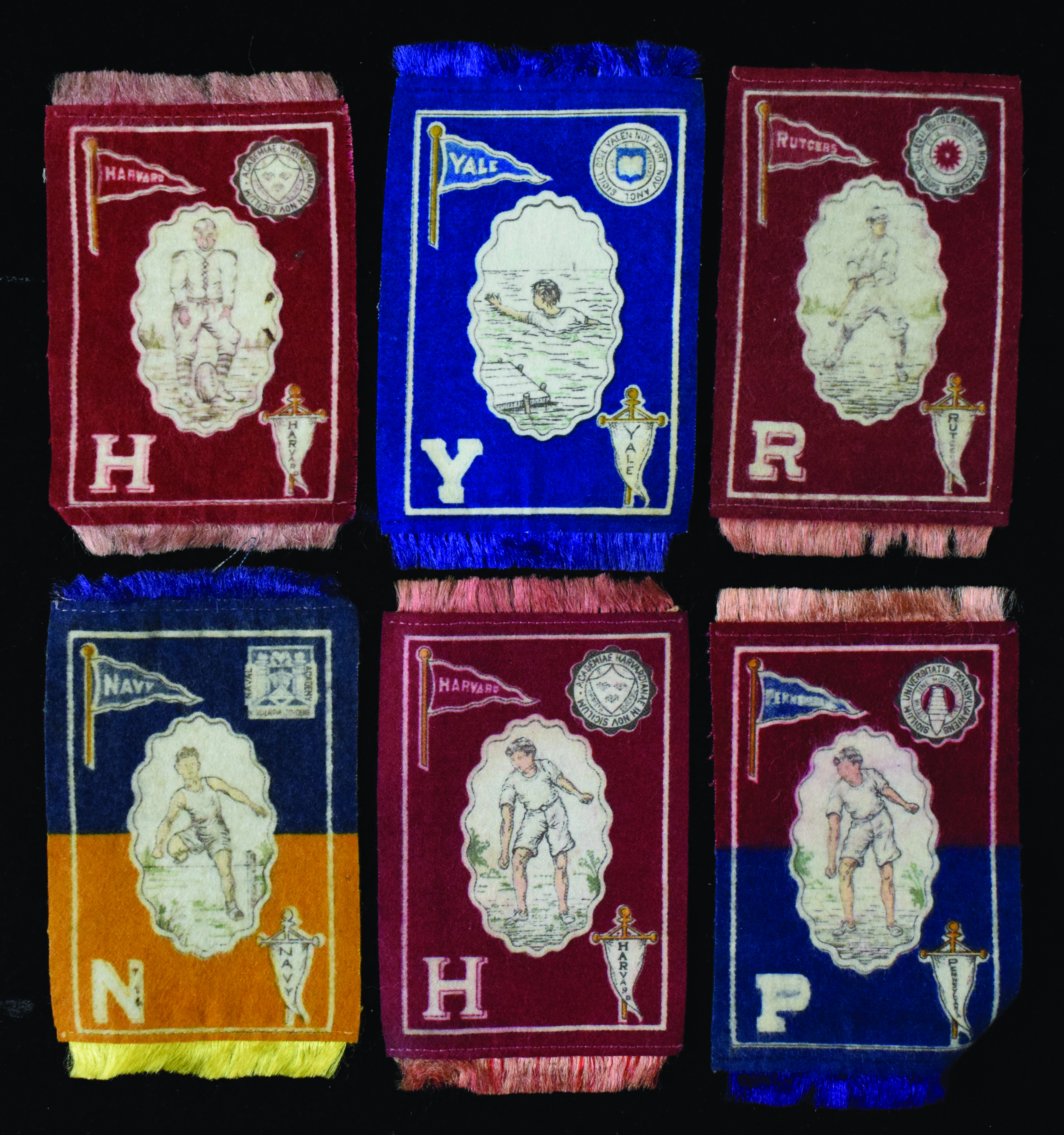 Description:Lot of (16) 1900s Murad B33 College Felts, including Yale and Harvard, plus extras (FR-EX). Nice lot of college felts featuring various sports, including baseball, track, football, swimming, rowing and fencing. Schools include Harvard, Amherst, University of Colorado, Yale, University of Chicaco, Rutgers, Utah, Navy, Vermont, University of Pennsylvania and Williams. Also includes a few other items, including "Little Short Stop" trade card, 1947 Cummings & Son Famous Fighters SWOP Card #15 Henry Hall and nonsports bird silk. Most college felts appear VG/EX with a couple trimmed. Range: FR-EX.