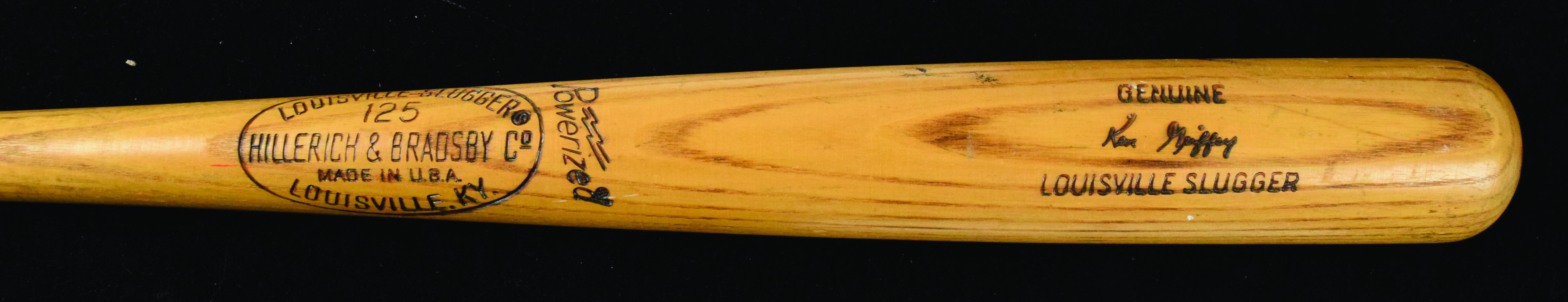 Description:Ken Griffey professional model baseball bat, c.1973-75 (PSA GU 8.5). 34" Louisville Slugger S216 Ken Griffey model bat with his #30 written on the knob in black marker. Includes LOA from PSA/DNA grading the bat 8.5 and noting excellent use with a crack on the back barrel, several ball marks and stitch impressions, cleat marks, rack streaks, and light coat of pine tar. Matching serial #1B18315 sticker is on the bat: PSA GU 8.5
