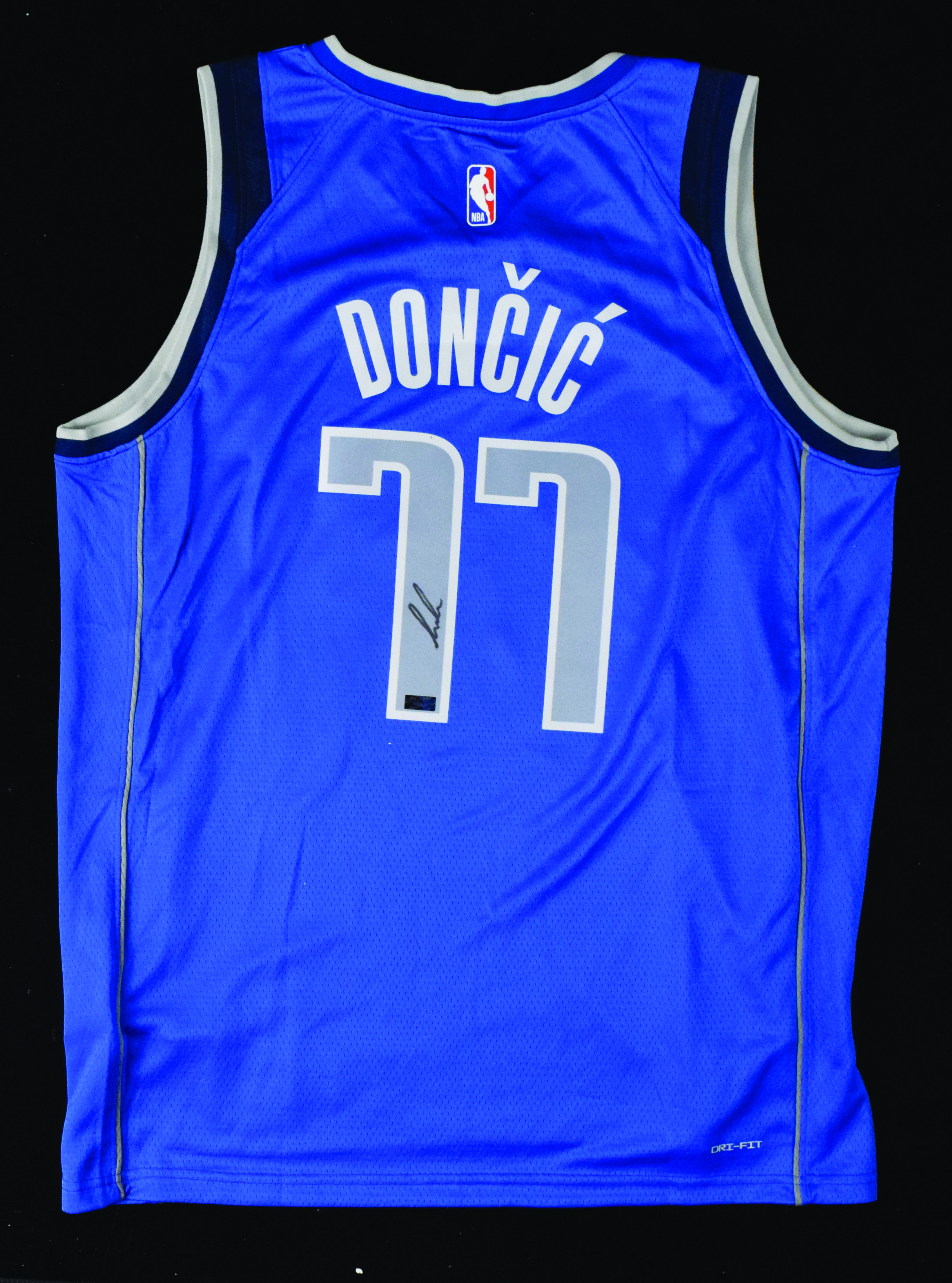 Description:Luka Doncic autographed Dallas Mavericks Swingman jersey with Panini authentication (Sig. MT). Size XL Nike Dallas Mavericks Swingman replica jersey has been signed on the back number by superstar Luka Doncic, rating 9 out of 10. A Panini authentication sticker is affixed to the back number, and Panini cert is also included. Jersey has little to no mentionable wear: MT. ($500-$1,000)