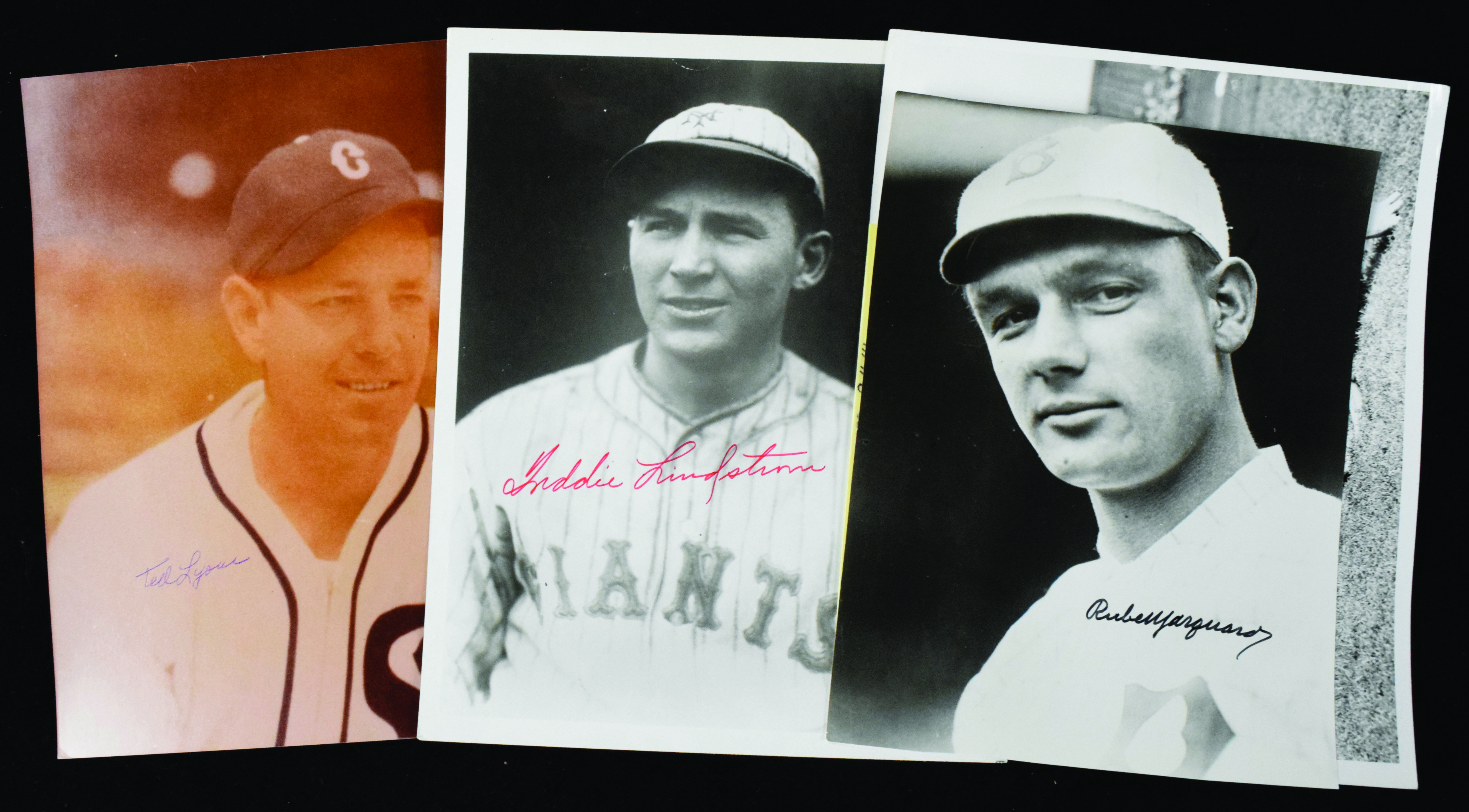 Description:Fred Lindstrom, Ted Lyons, Rube Marquard, Charlie Keller signed photographs (VG-NM). Includes 8"x10" photo signed by Freddie Lindstrom (VG-VG/EX), 8"x10" photo signed by Ted Lyons (NM), 7"x9" photo signed by Rube Marquard (EX/MT), and 8"x10" United Press International photo signed by Charlie Keller (VG). Signatures rate 8 to 10 out of 10: VG-NM