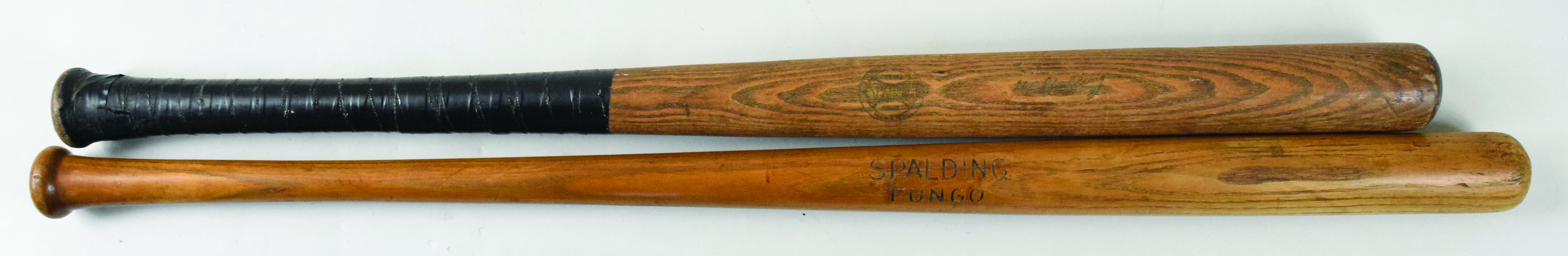 Description:Lot of (2) vintage Spalding baseball bats, c.1895-1920s (VG-EX/MT). Includes c.1895-1907 34" bat with A.G. Spalding in script to the right of the logo (VG taped handle), and c.1910s-20s 36.75" Spalding "Fungo" bat (EX-EX/MT).