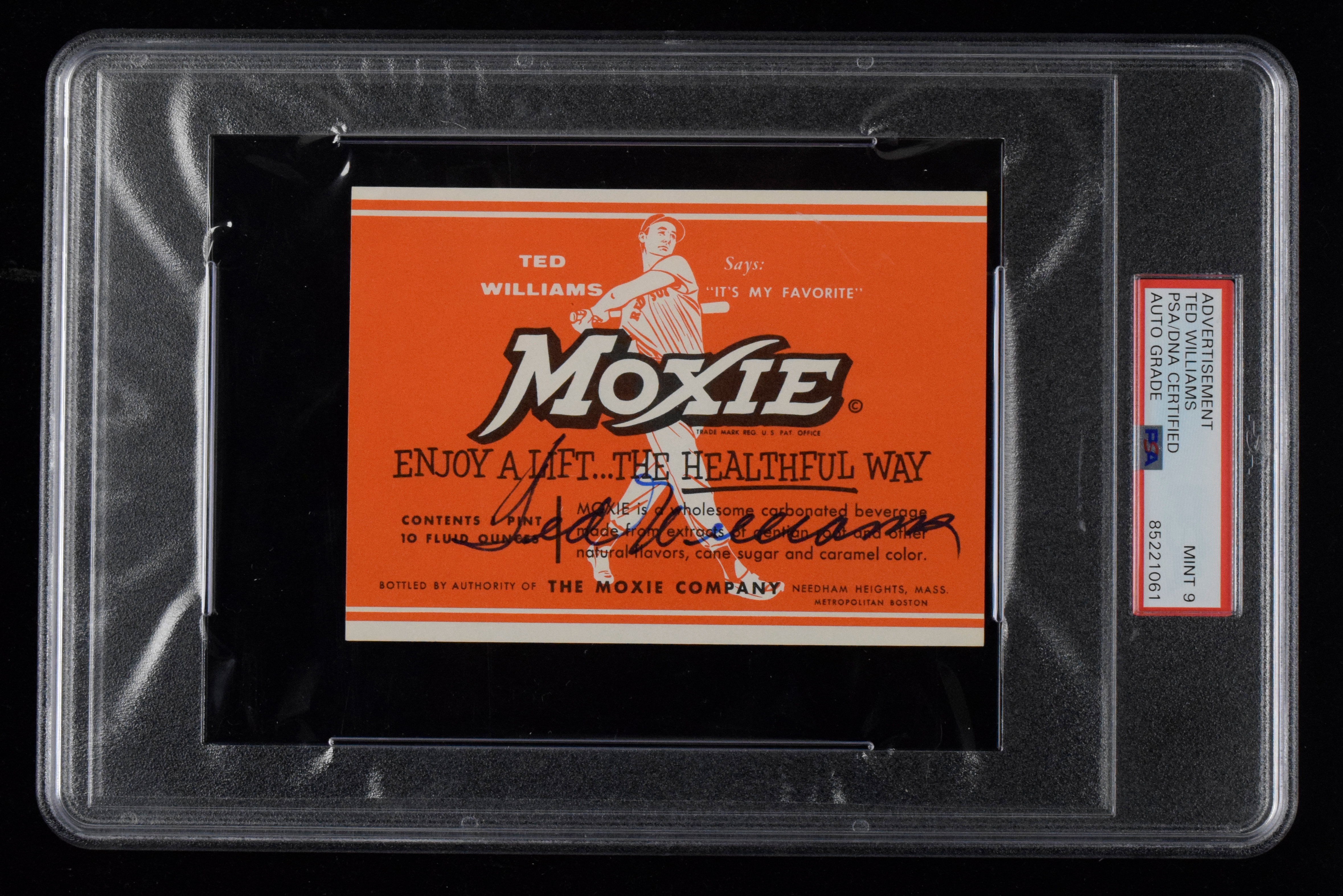 Description:Ted Williams autographed Moxie label (PSA/DNA Mint 9) Marker signature is graded Mint 9 by PSA and label shows little to no mentionable wear: PSA/DNA Mint 9