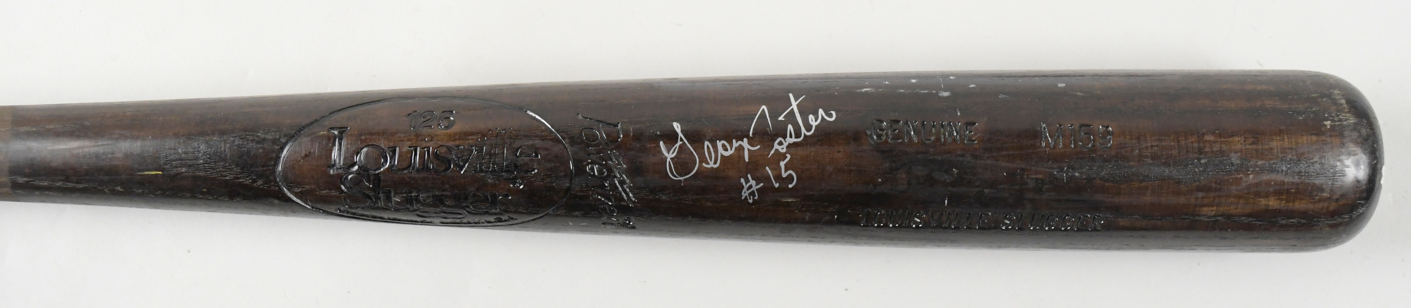 Description:c.1983-85 George Foster autographed professional model baseball bat (EX/MT) Louisville Slugger 125 model M159 bat with Foster facsimile signature in the barrel measures 35" long. Number "15" is written on either end in period marker. Signed in silver marker rating 8 out of 10 (skip to F in last name). Uncracked with the slightest hint of surface wear and no visible use: EX/MT