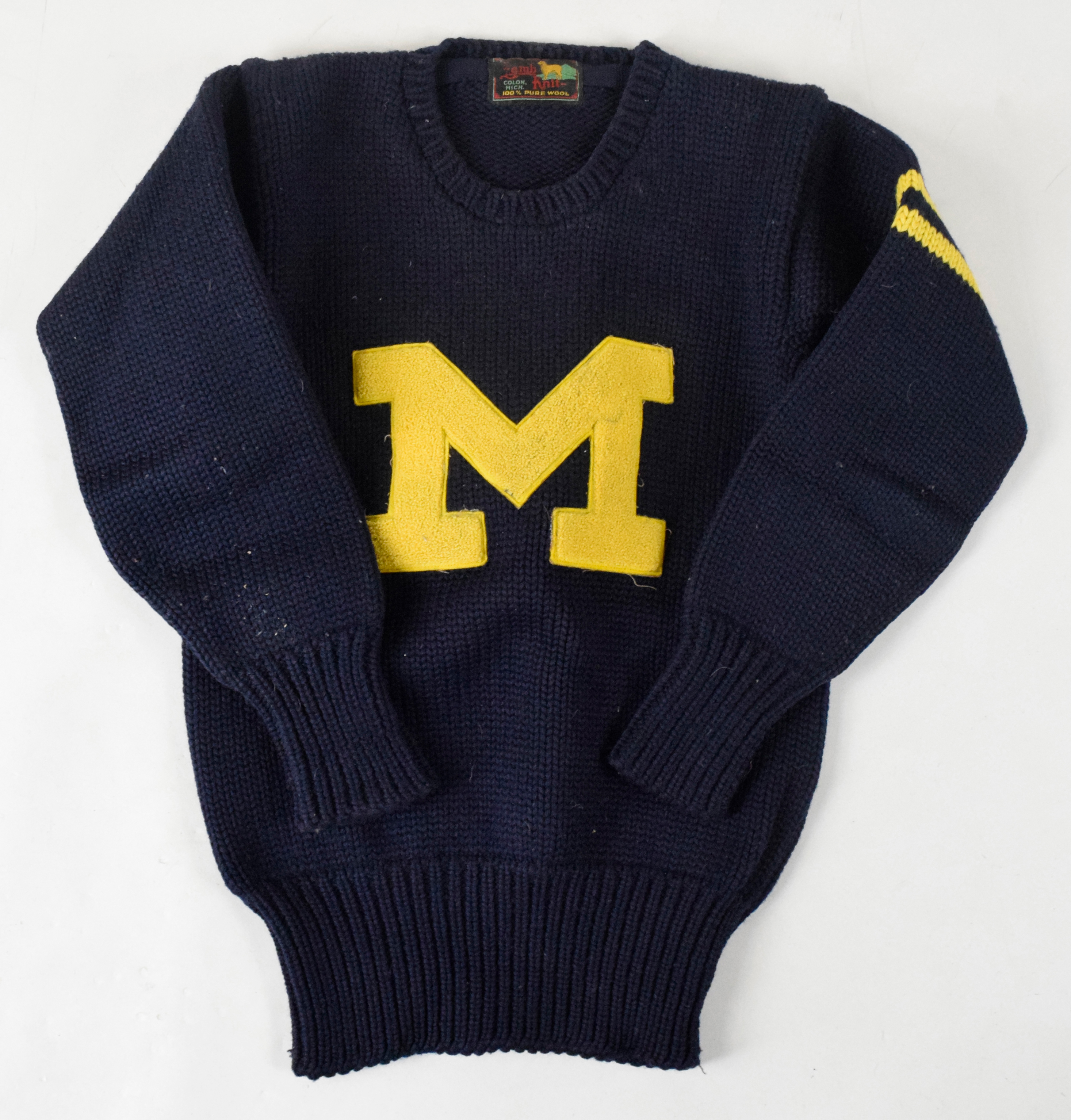 Description:University of Michigan letterman sweater attributed to Norm Daniels, c.early 1930s (EX/MT). Lamb Knit brand Michigan sweater with "N. Daniels" name sewn inside above the tail. Daniels played baseball, basketball, and football while at Michigan, and later went on to have a very successful coaching career: EX/MT