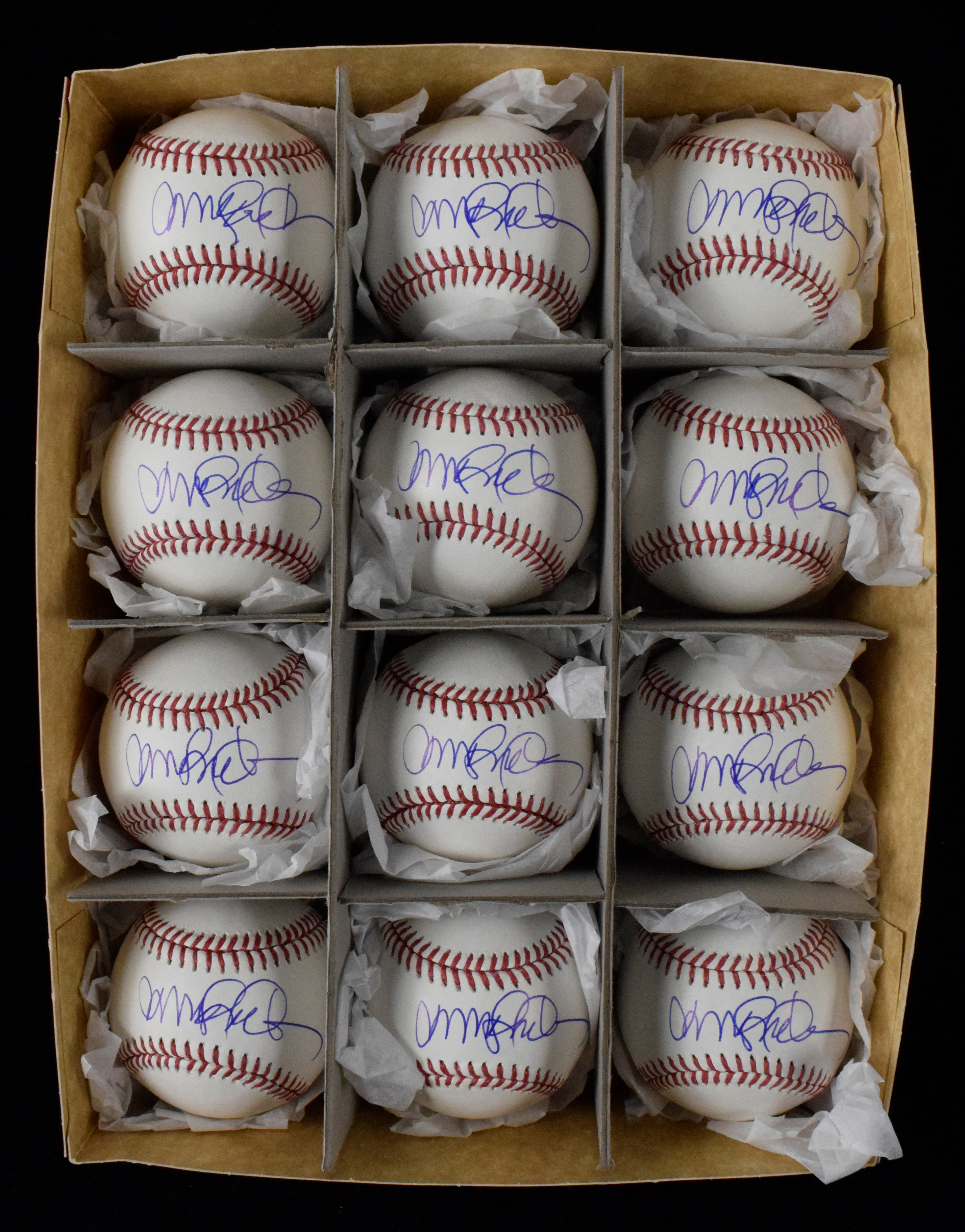 Description:Lot of (12) Ryne Sandberg single-signed baseballs (NM-NM/MT overall). All are signed on the sweet spot of R.Manfred ML balls by Sandberg in blue ink. Signatures rate 8 to 9/10 out of 10. Hunt Auctions serial #ed hologram sticker is on each ball: NM-NM/MT overall ($750-$1,000)