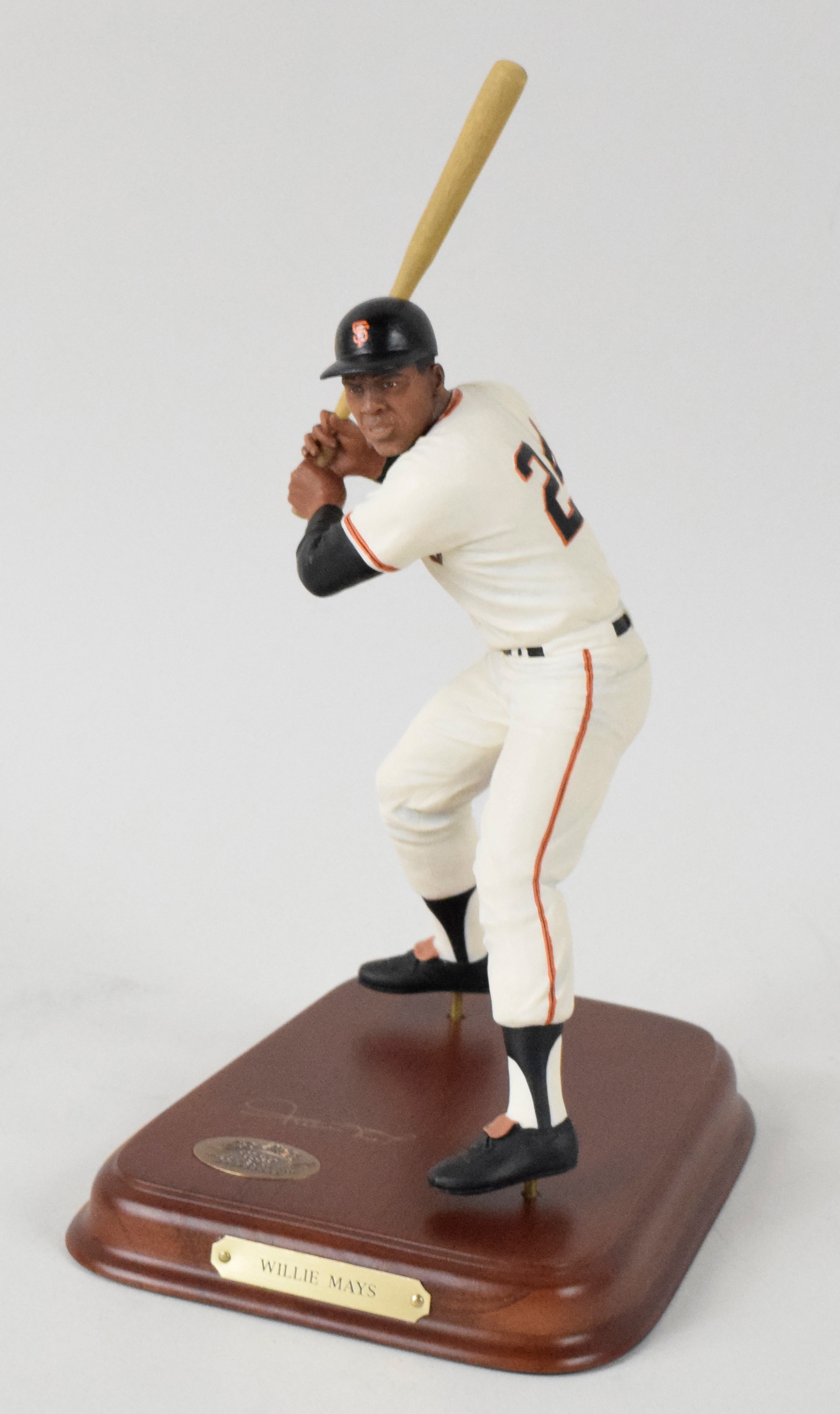 Description:Willie Mays statue by Danbury Mint (NM) Nicely done figural display piece in original box. Includes certificate of provenance from the Willie Mays Collection: NM