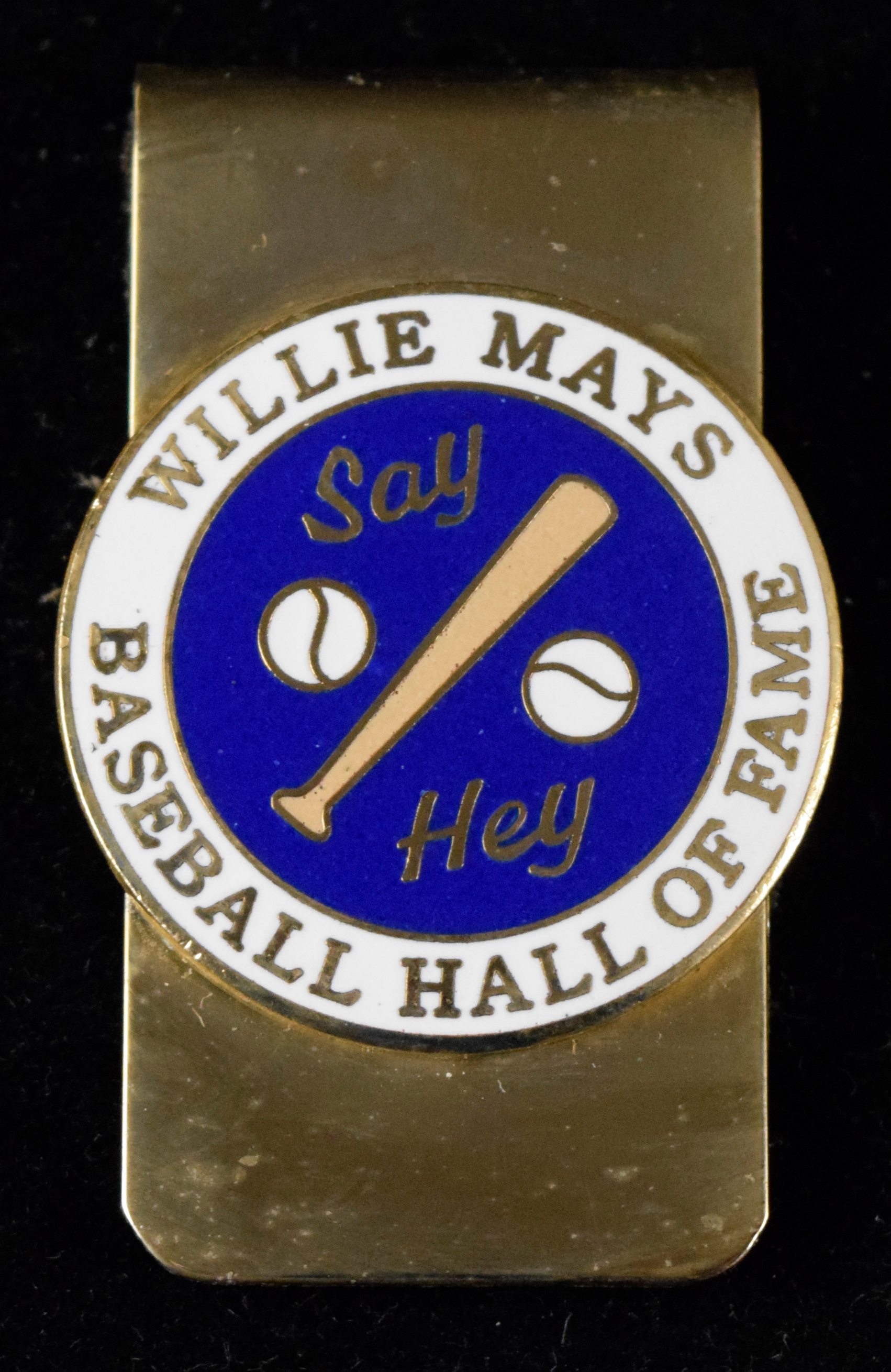 Description:"Willie Maysâ?¦Say Hey" money clip (VG-EX) Vintage piece with a nice "Say Hey" enameled decoration on the front. Back has residue/soiling, portions of which could likely be cleaned off. Includes certificate of provenance from the Willie Mays Collection: VG-EX