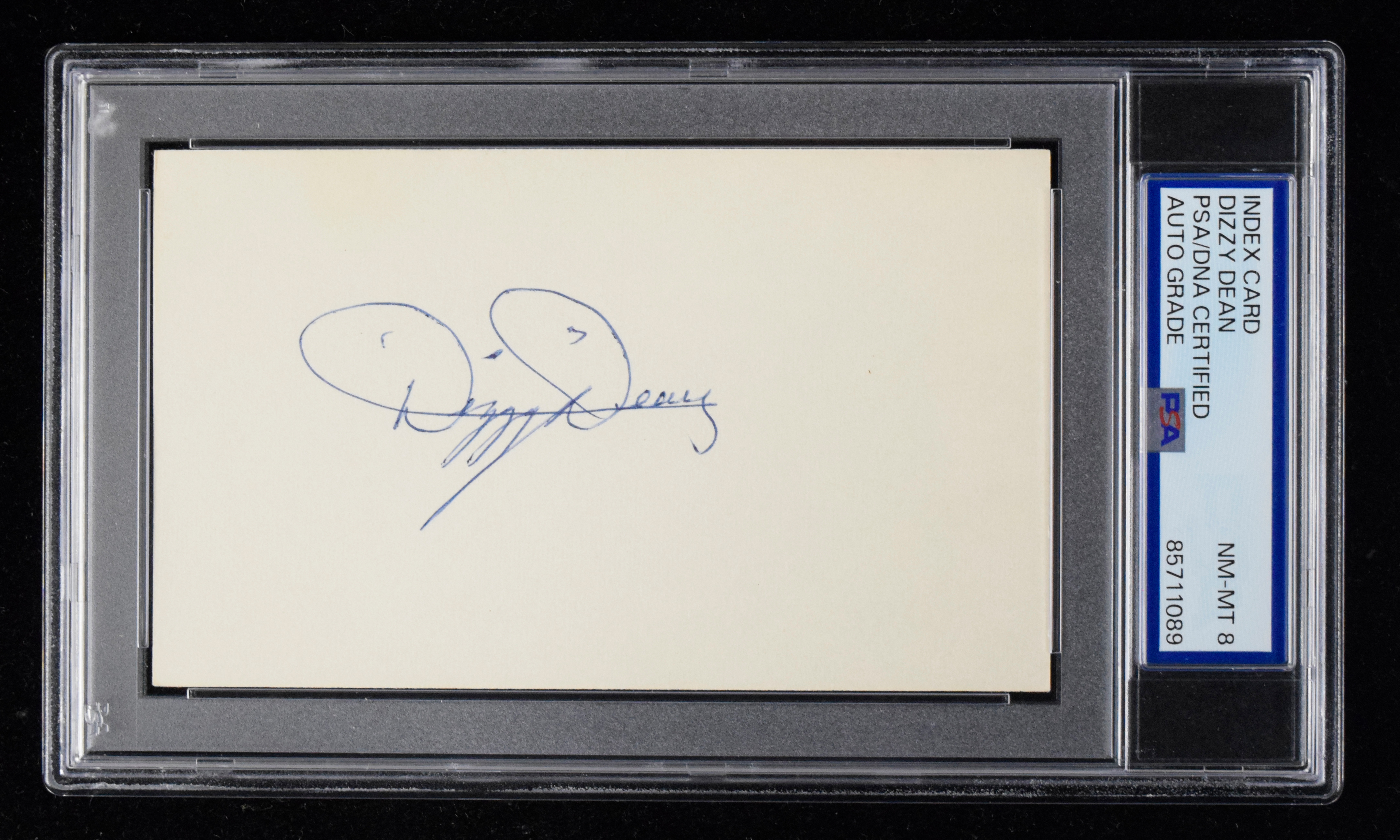 Description:Dizzy Dean autographed index card (PSA/DNA NM-MT 8) Signed in ink: PSA/DNA NM-MT 8
