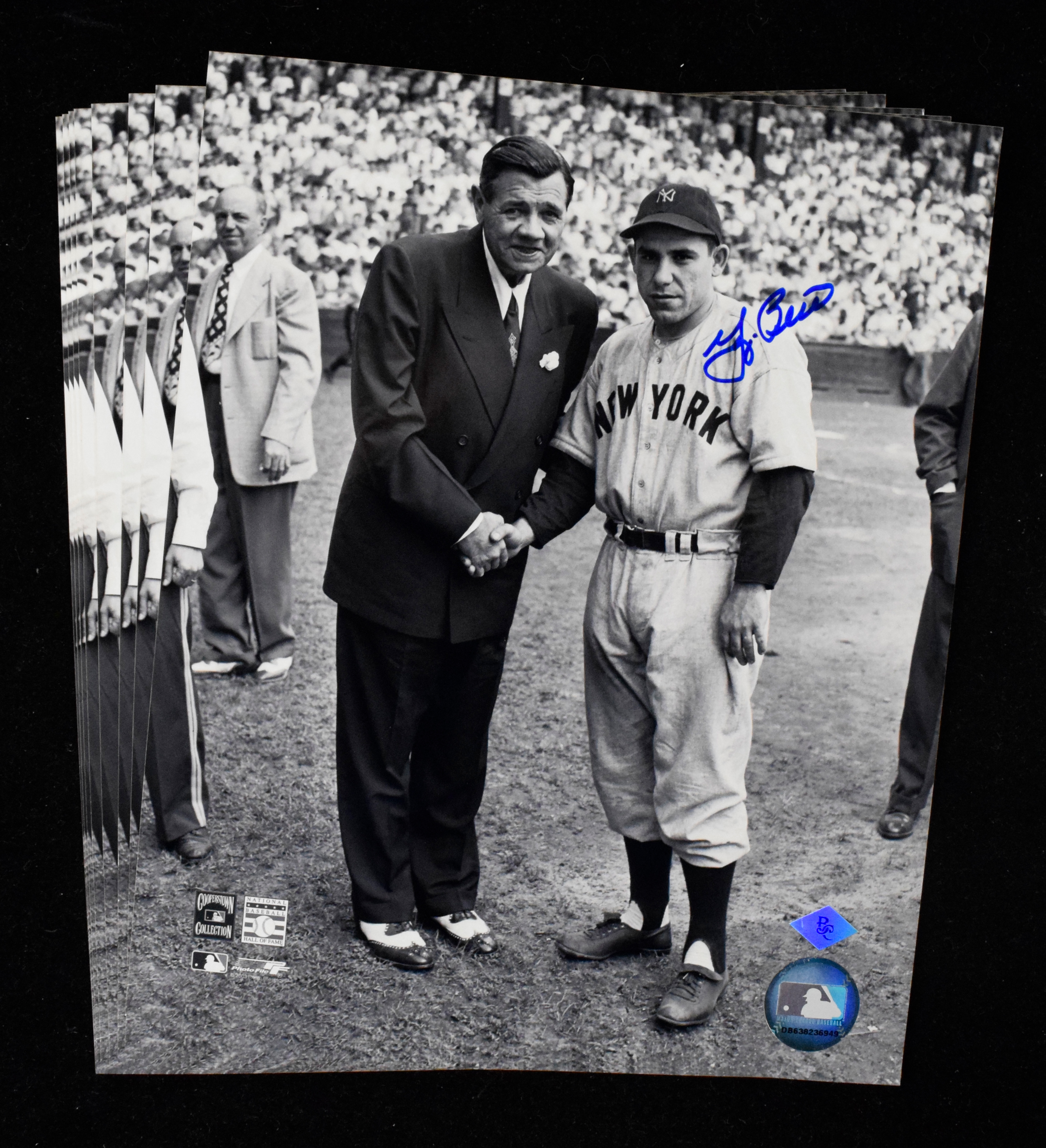 Description:Lot of (8) Yogi Berra signed 8"x10" photographs (NM-NM/MT). Berra signed each photo in blue marker. Signatures rate 8/9 to 10 out of 10. BC Sports hologram sticker is on each photo: NM-NM/MT