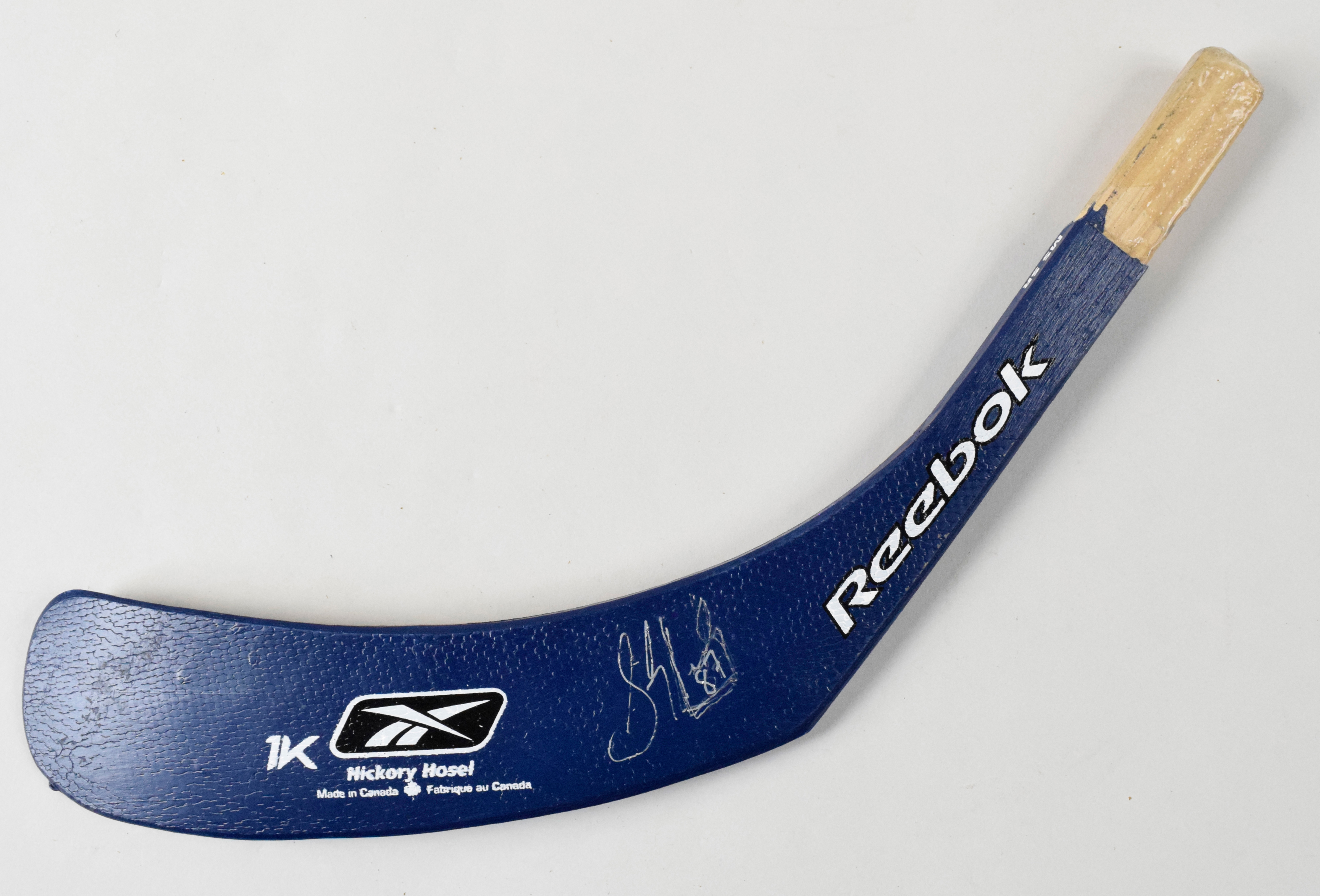 Description:Sidney Crosby signed hockey stick blade (EX/MT-NM). Reebok blade signed by Crosby in silver marker. Signature rates 7 out of 10 due to last name retraced: EX/MT-NM